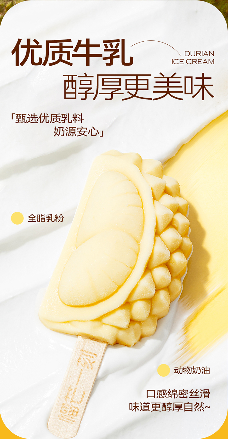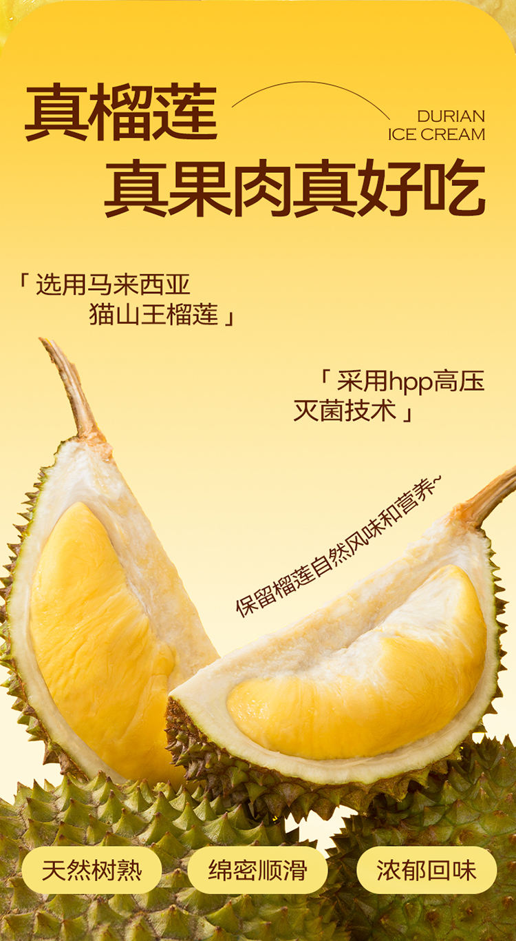 榴芒一刻猫山王榴莲冰淇淋50g*6/8/10/12支 下午茶生日礼物年货甜点 HY