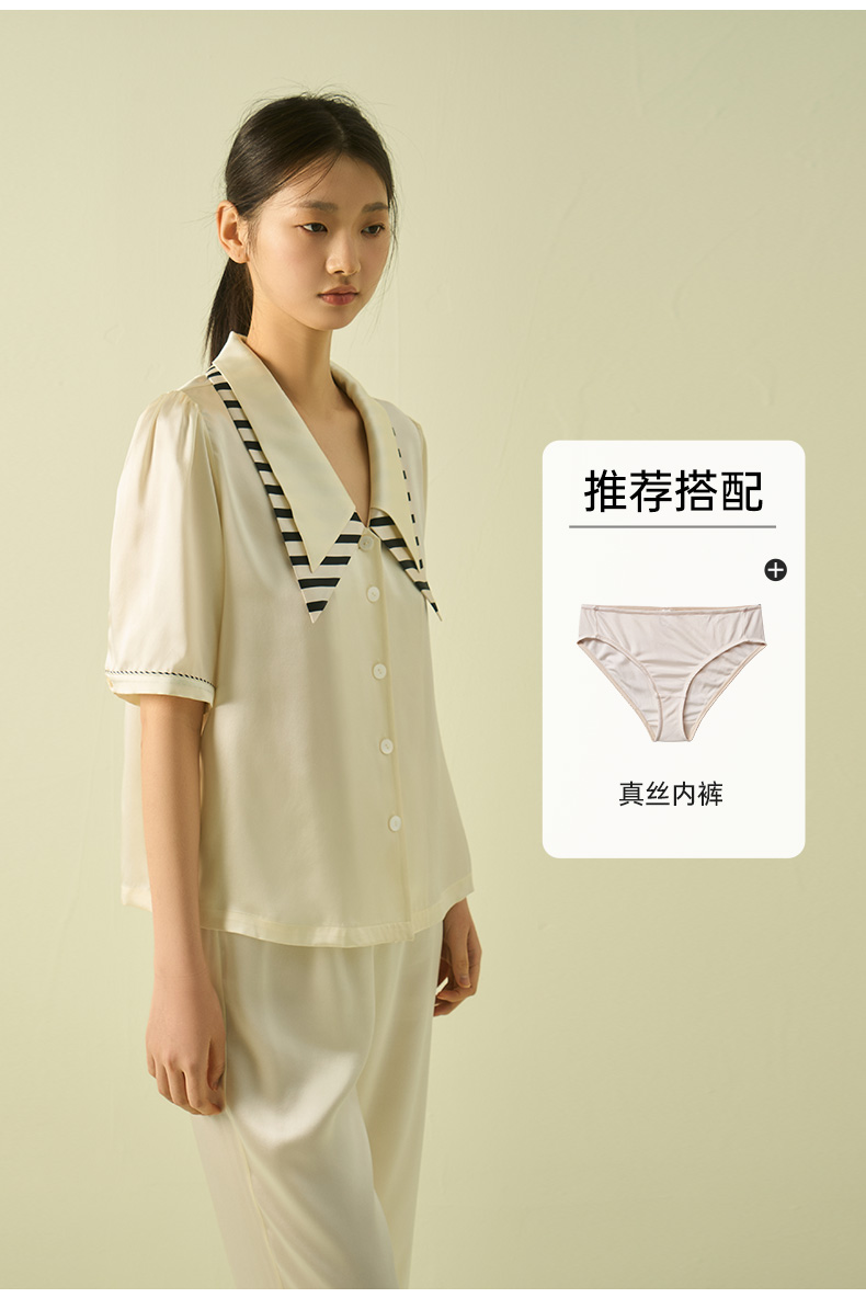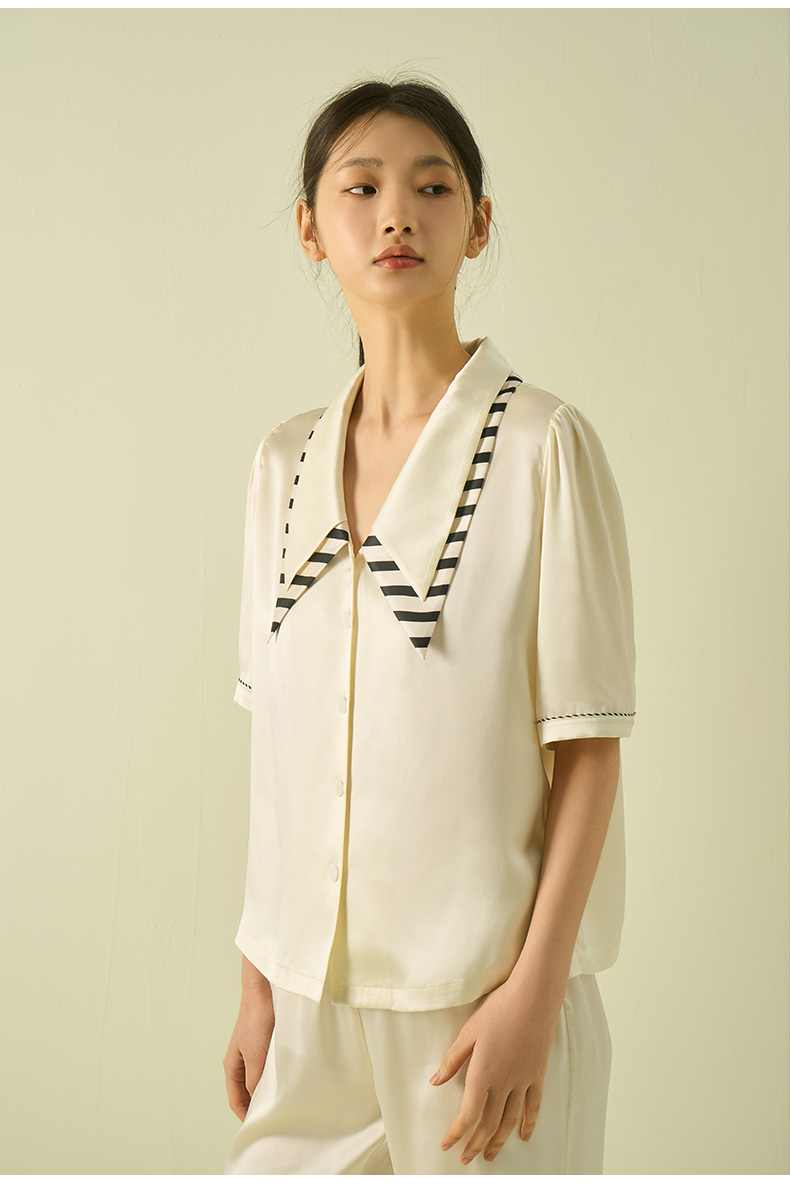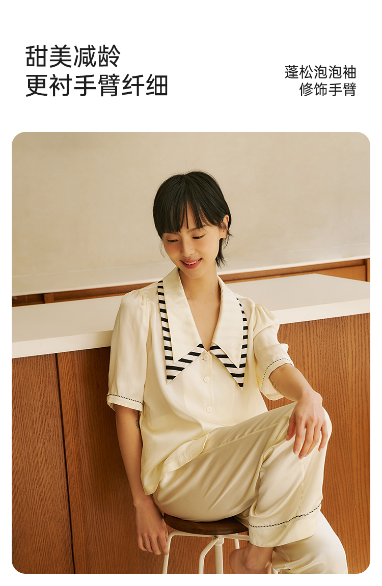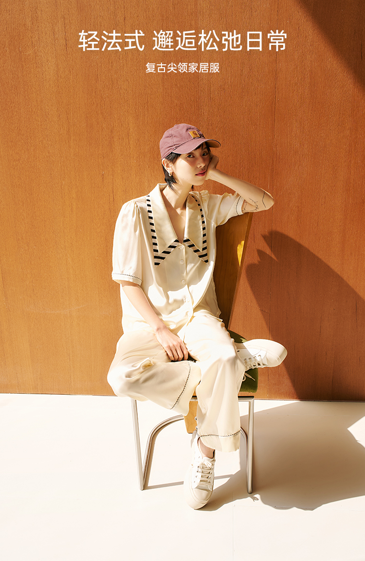 桑罗复古轻法式尖领泡泡袖甜美睡衣套装可外穿家居服