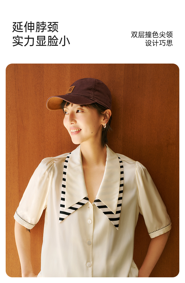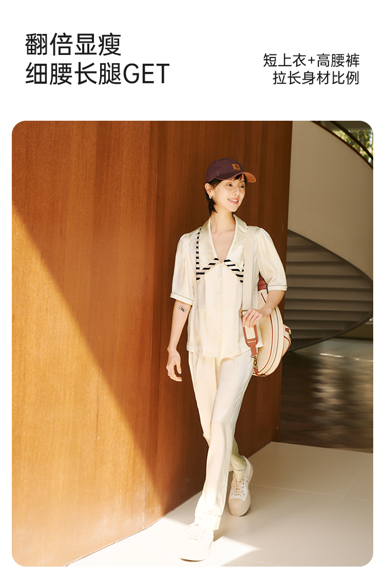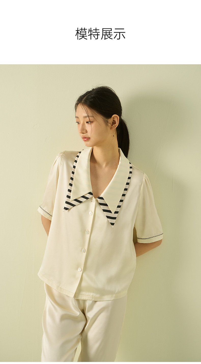 桑罗复古轻法式尖领泡泡袖甜美睡衣套装可外穿家居服