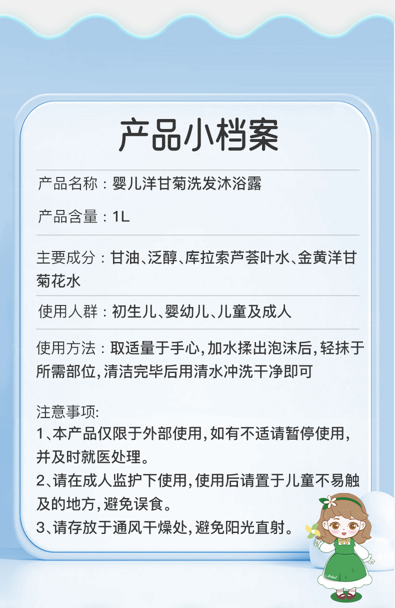 婴儿洋甘菊纯露洗发沐浴露1000ml