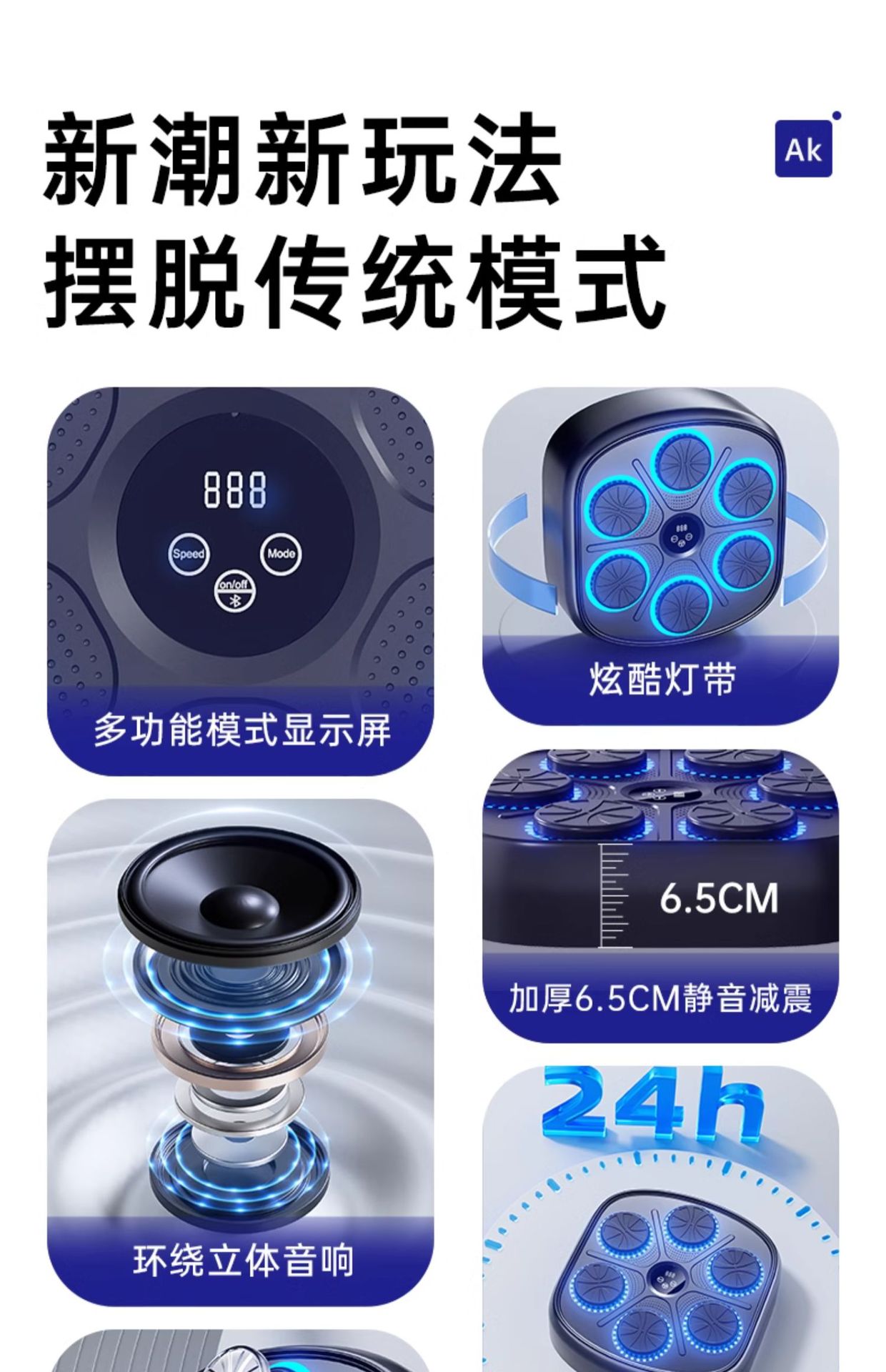 智能蓝牙音乐拳击墙靶儿童拳击训练器材拳击机家用健身器材拳击靶_ym