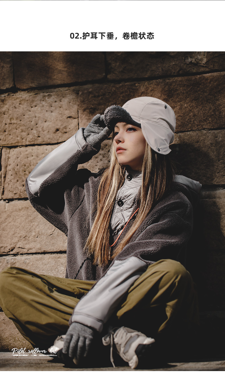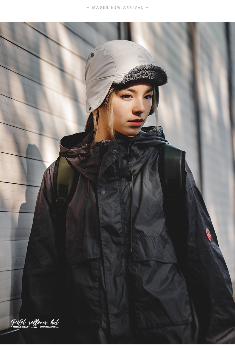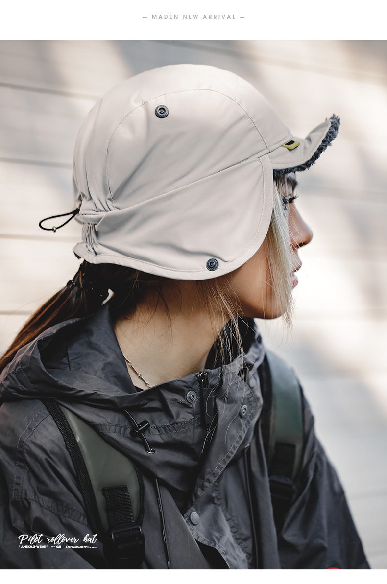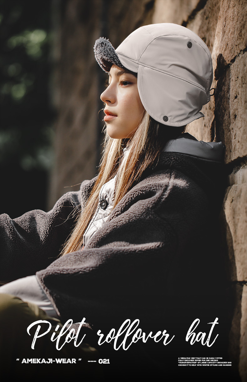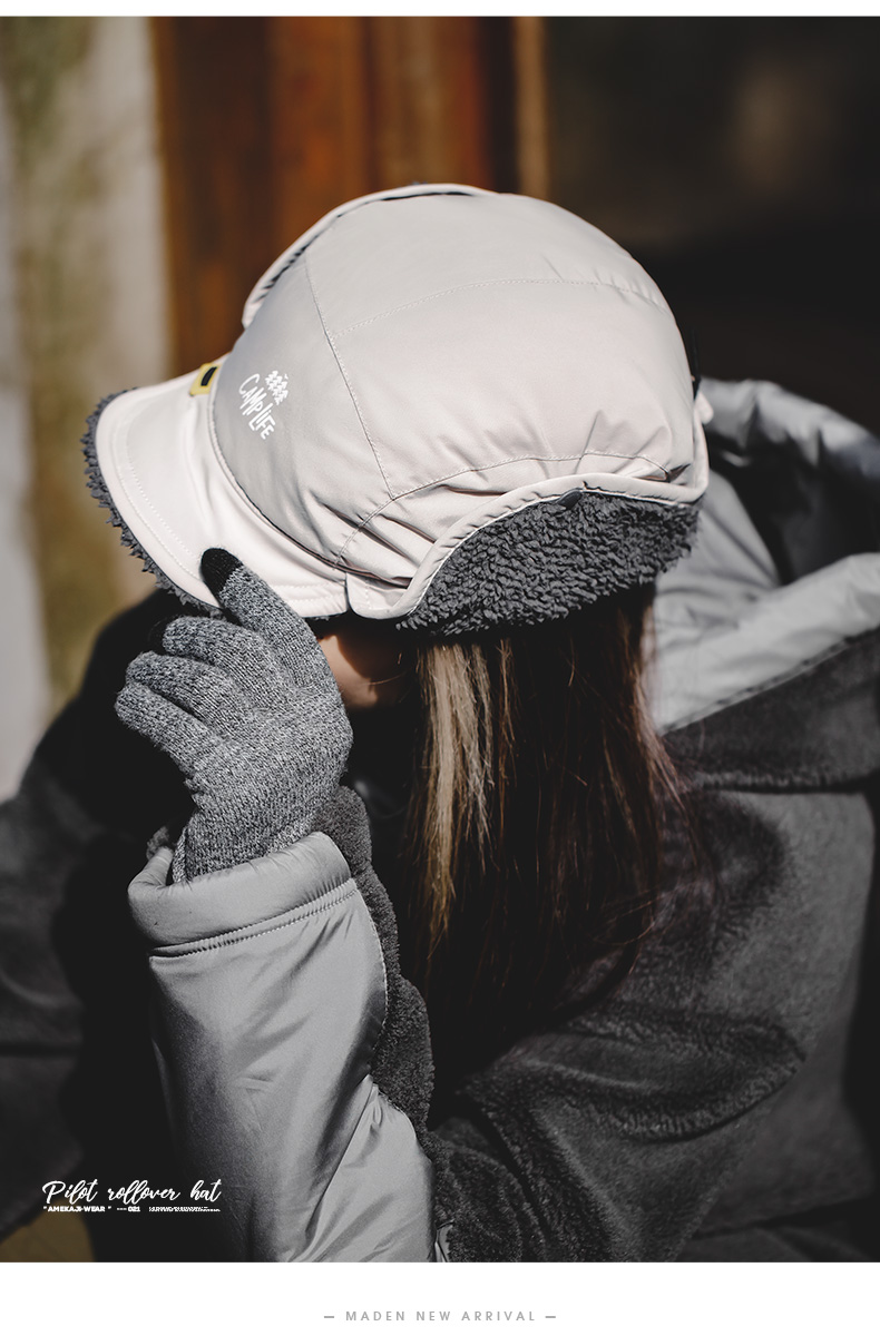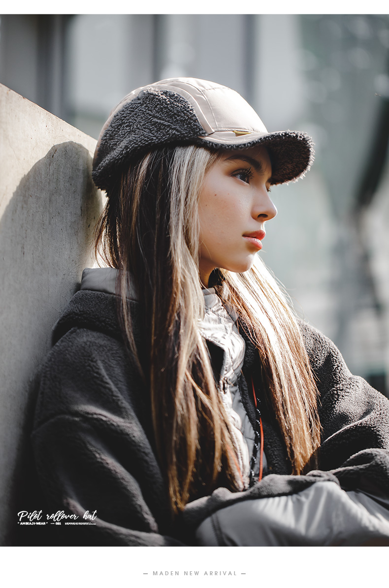 马登女装羊羔毛护耳帽子冬保暖御寒雷锋帽户外骑车防风包头棒球帽