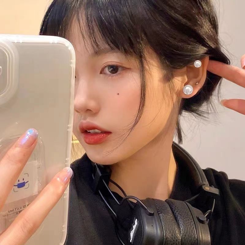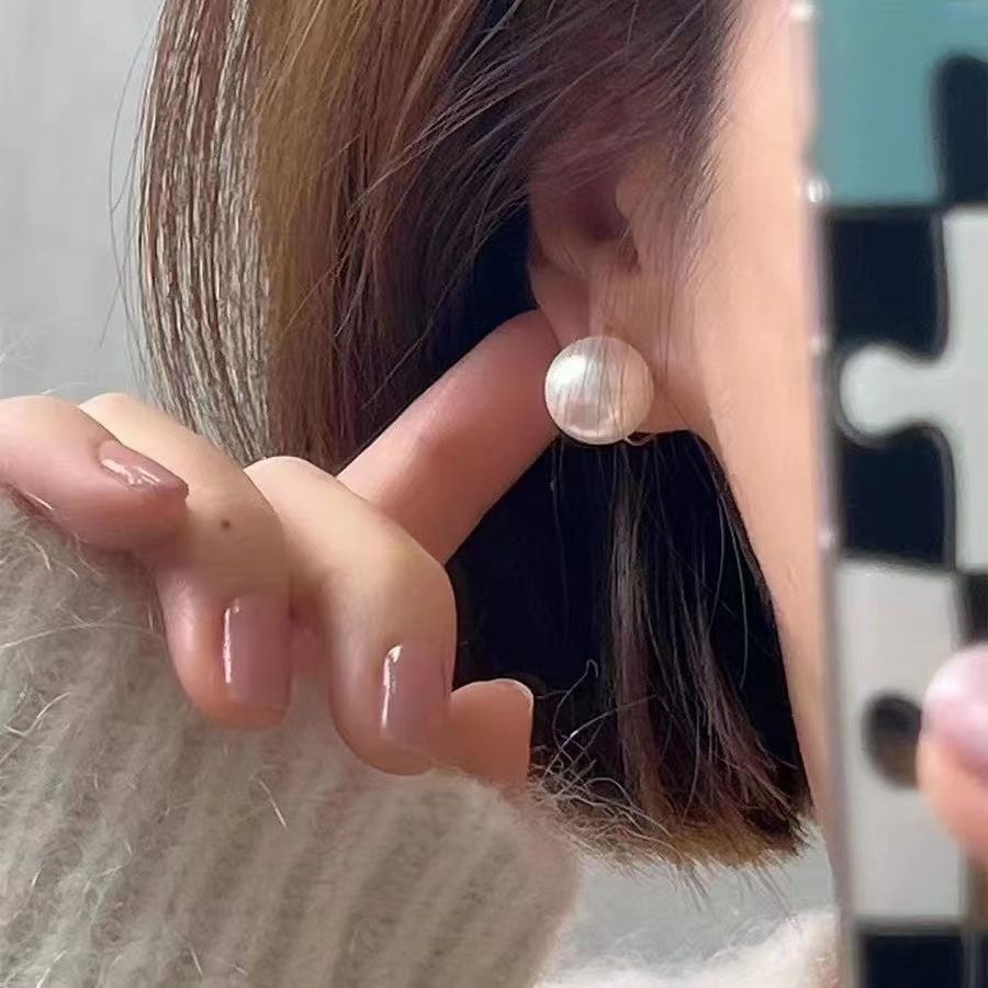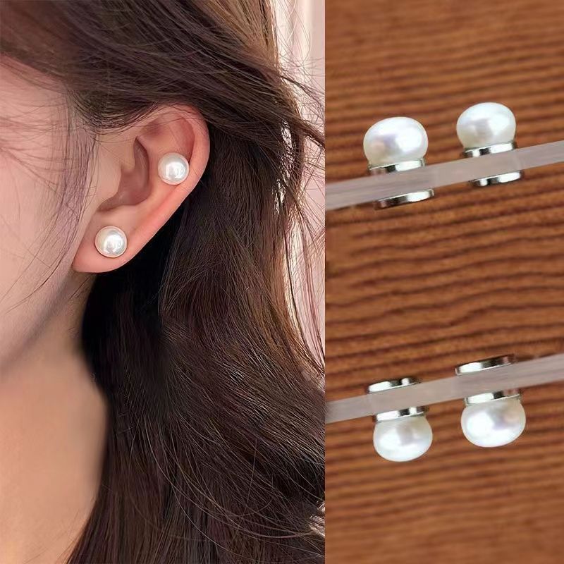磁吸高亮贝母珍珠耳夹无耳洞气质名媛时尚百搭半圆珠耳蜗耳骨耳钉