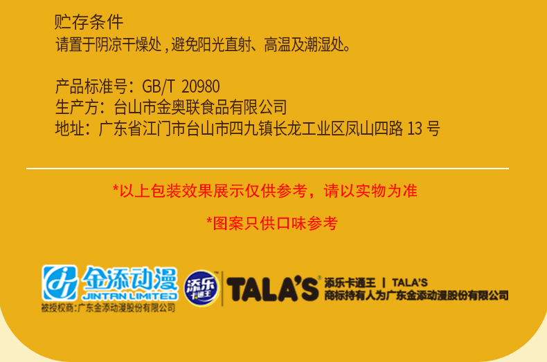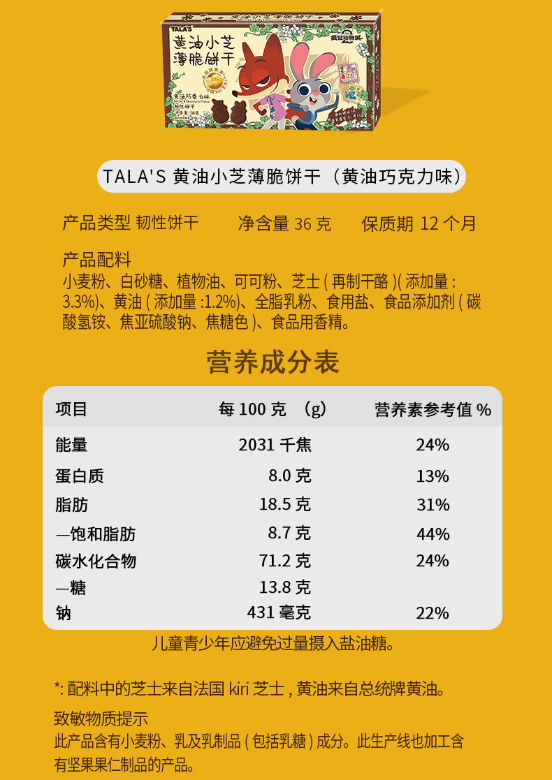【品名】【超值4盒装】添乐卡通王*疯狂动物城联名款 黄油小芝薄脆饼干 酥脆可口 奶香浓郁 【规格】 黄油芝士味*4盒 黄油巧克力味*4盒 黄油巧克力味*2盒+黄油芝士味*2盒 【产地】国内 【保质期】12个月 【发货包装】独立包装 【发货地】广东 【发货快递】圆通 【不发货区域】新疆、西藏、青海、宁夏、港澳台 【补邮费地区】黑龙江、吉林、辽宁+5元/单 【发货时效】48-72小时,周末节假日顺延 |