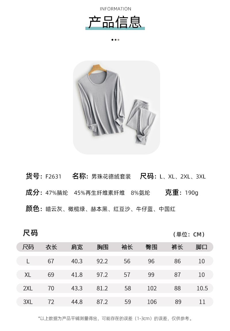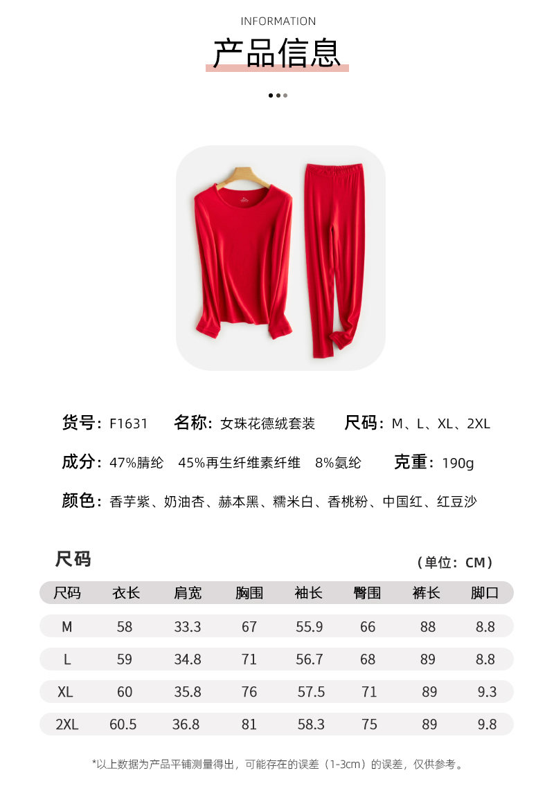 weyo秋冬男女款珠花德绒保暖内衣打底套装F1631、F2631