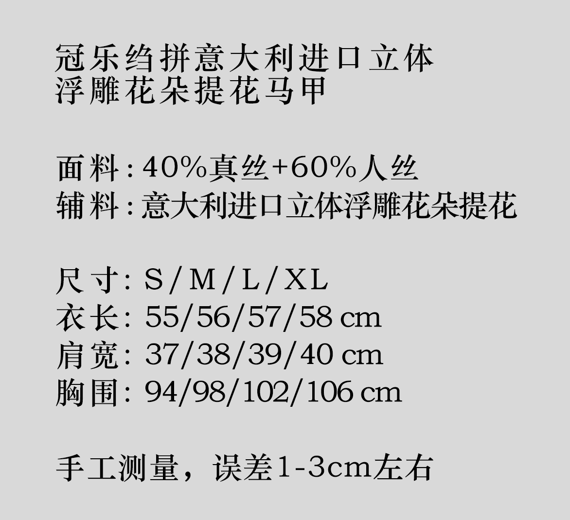 盛唐牡丹| 冠乐绉拼意大利进口立体浮雕花朵提花马甲