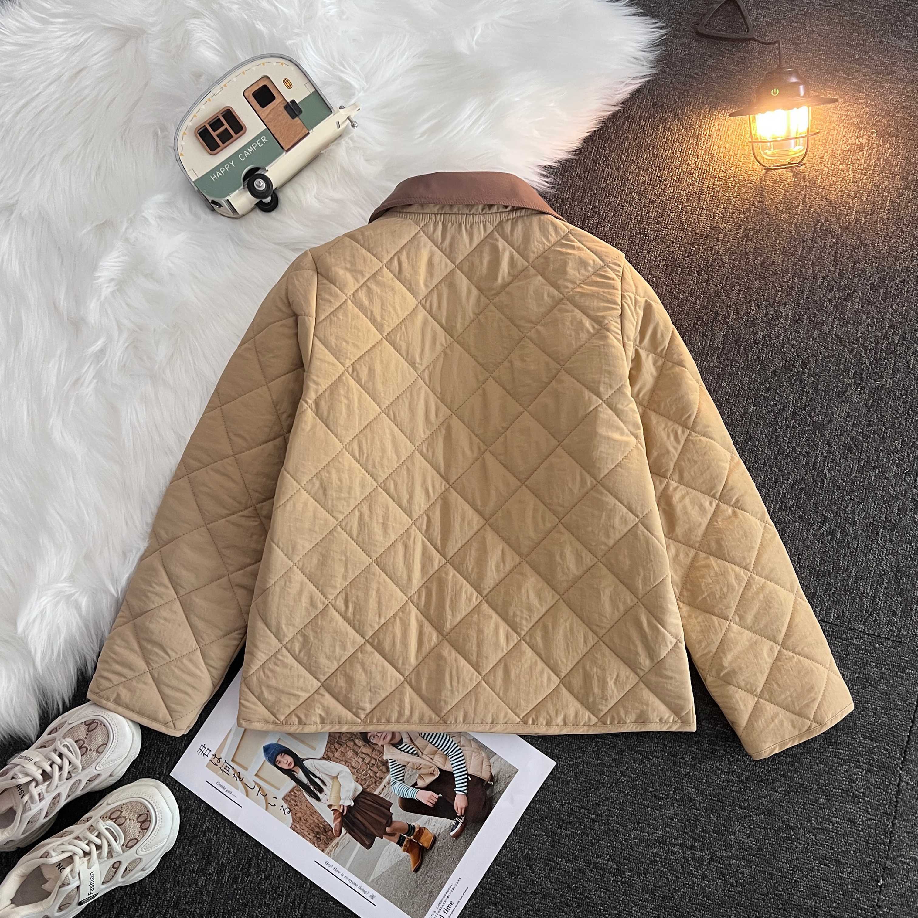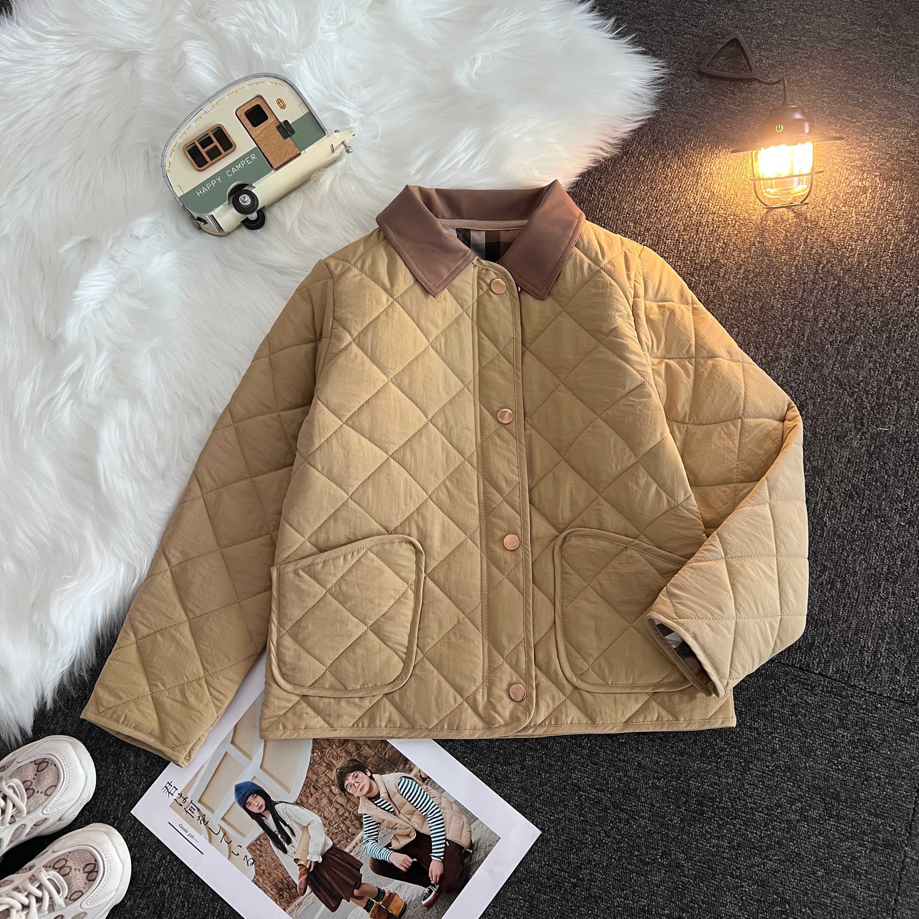儿童棉服狠狠惊 艳到 精典的卡其色调,沉稳又大气, 永远不会过时,随便搭配都很出彩~菱形格纹绗缝设计,jing致感拉满,细节处彰显品质 。还有那质感满满的棕色衣领,与整体配色相呼应,时尚感up up!衣服的版型也很赞,宽松又不失利落,能很好地修饰身形,让宝贝穿起来既舒适又有型。不管是日常上学还是出门游玩,穿上它,宝贝就是人群中醉亮眼的崽不得不说,在童装设计上,真的把糕级感和实用性拿捏得死死的,给宝贝入手不亏!