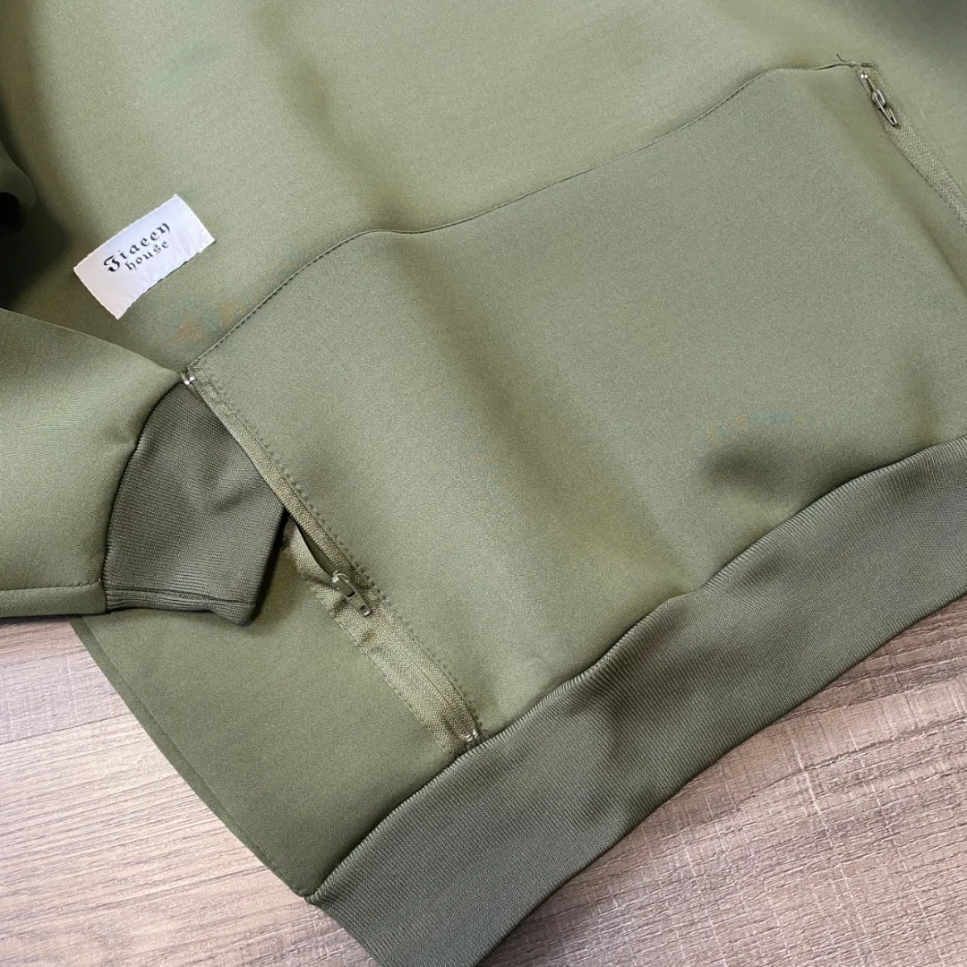 前胸田岛机绣,字母立体饱满 不连线。大口袋设计,2条同色YKK拉链加持。口袋上方布唛点缀。整体车线平稳,做工板正,0线头。大厂出货,细节彰显品质。