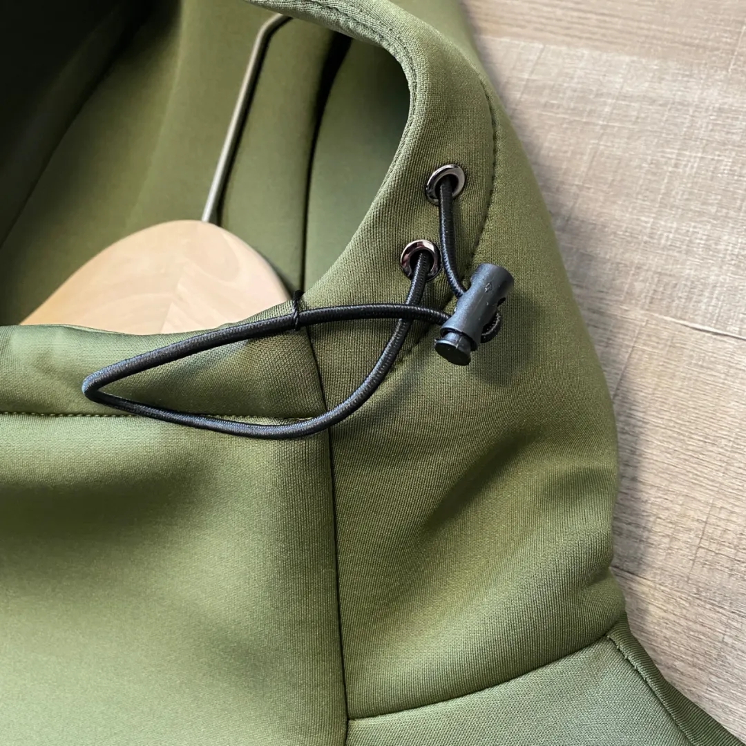 解构剪裁,忍者元素,半面罩的领口设计,配合可收口大帽子。机能风+神秘感直接拉满!!!