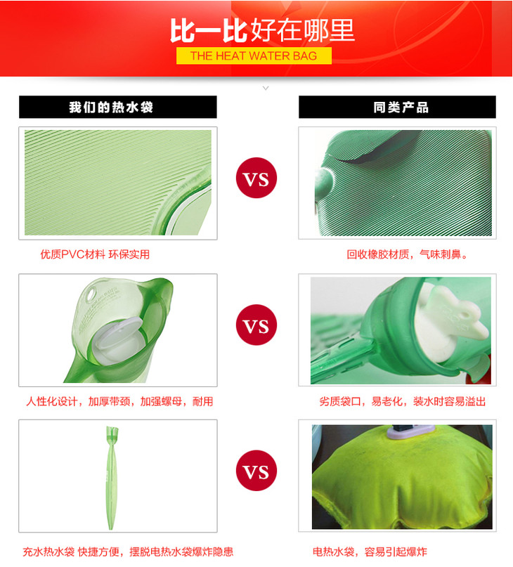 原始点大长条2000mlPVC暖水袋热水袋按摩暖手宝外热源暖宝宝