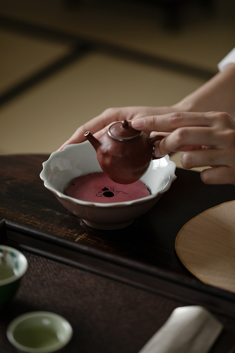 永利汇无落手工欣然棱口紫铜做旧壶承茶功夫铜配件双层蓄水带盖复古手绘