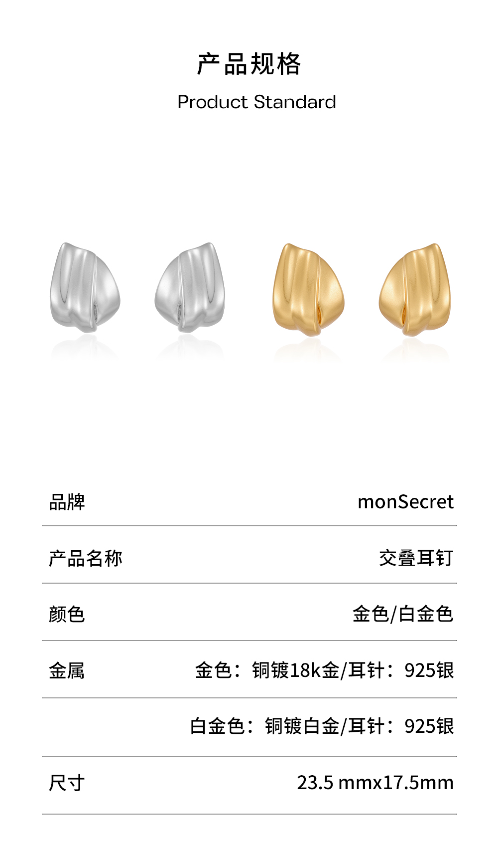 monSecret|PURE0107 交叠耳钉【PURE】 [ 金 / 银 ]