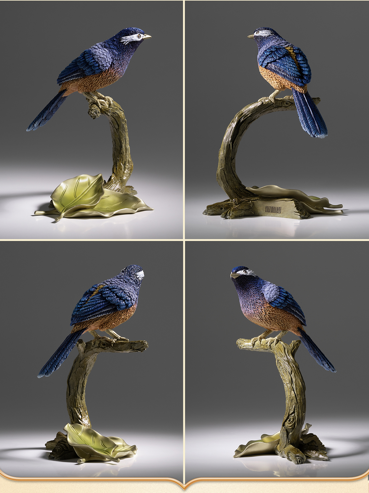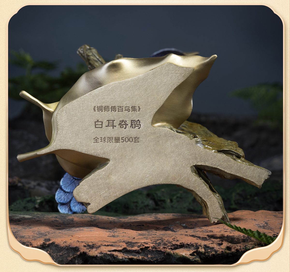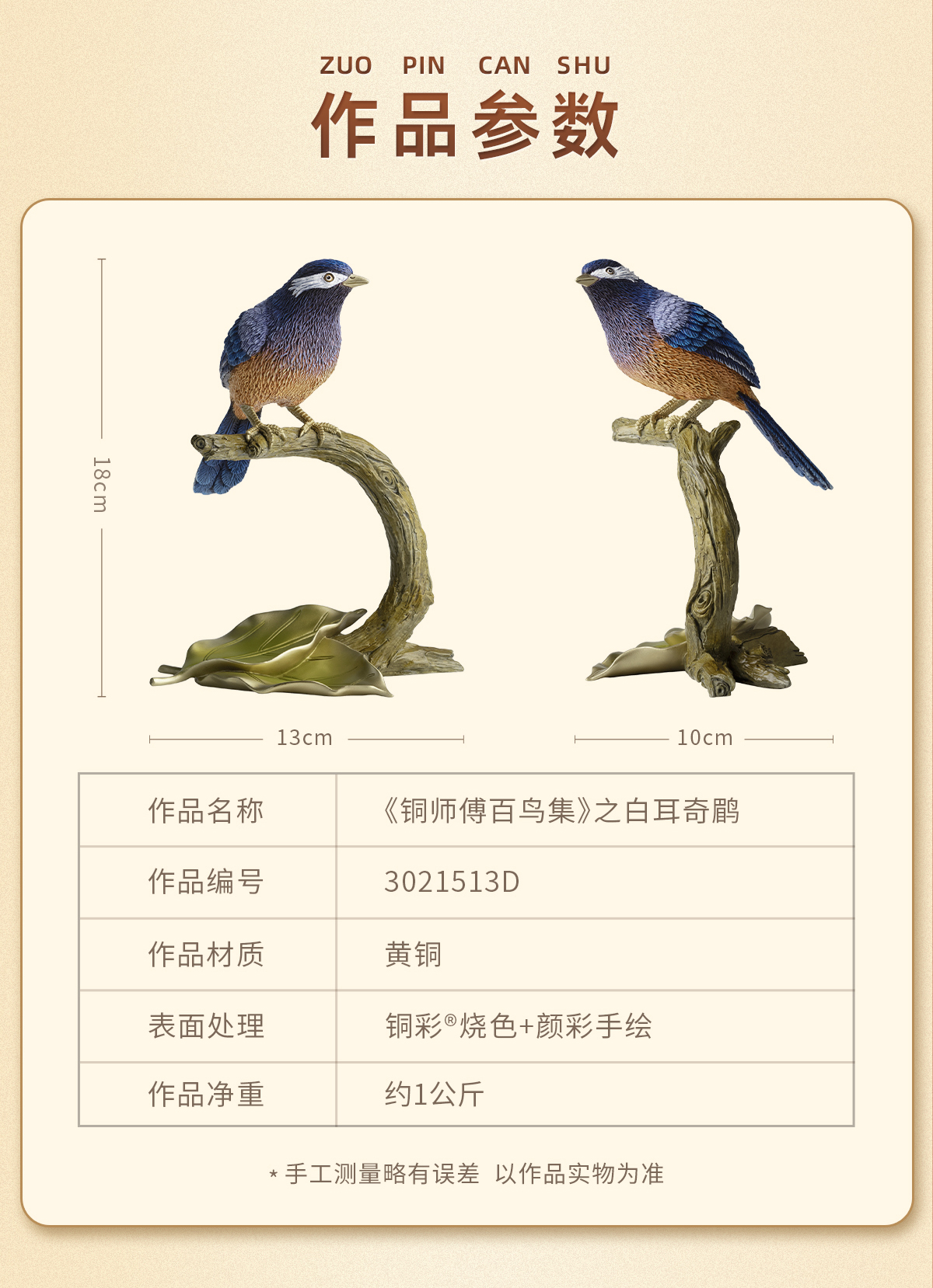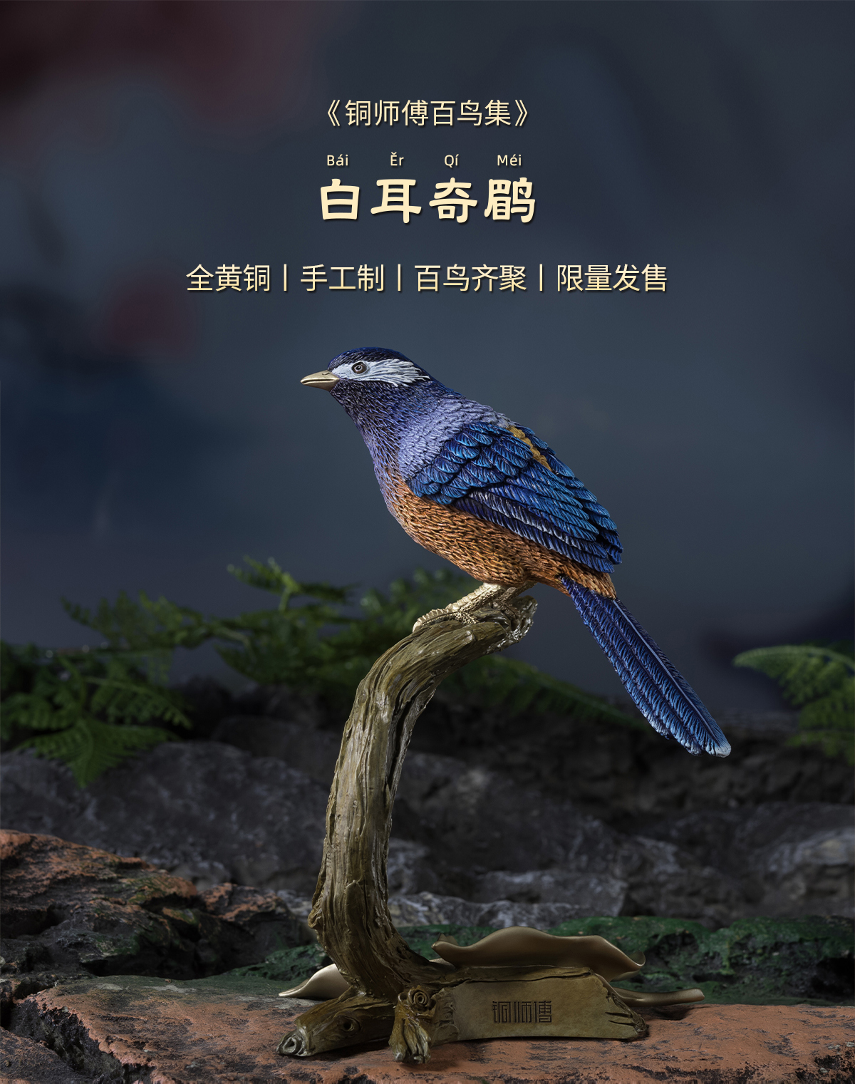 铜师傅《铜师傅百鸟集》之白耳奇鹛 客厅桌面铜鸟摆件 装饰品