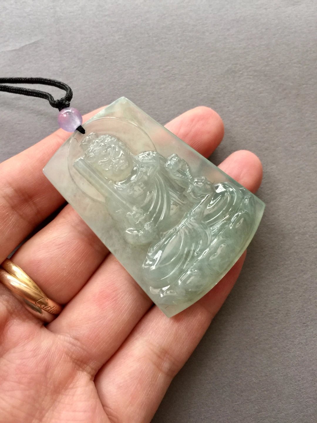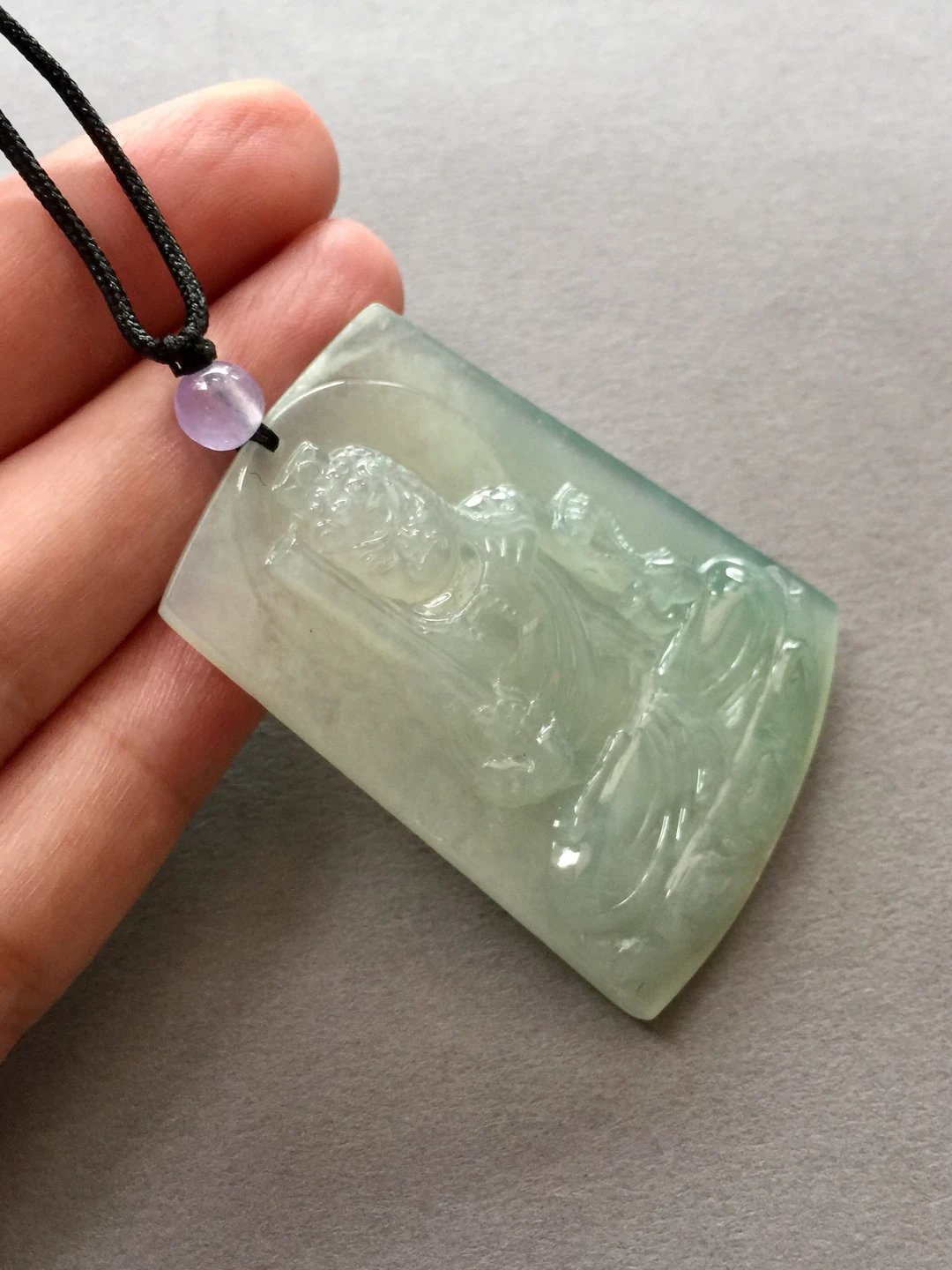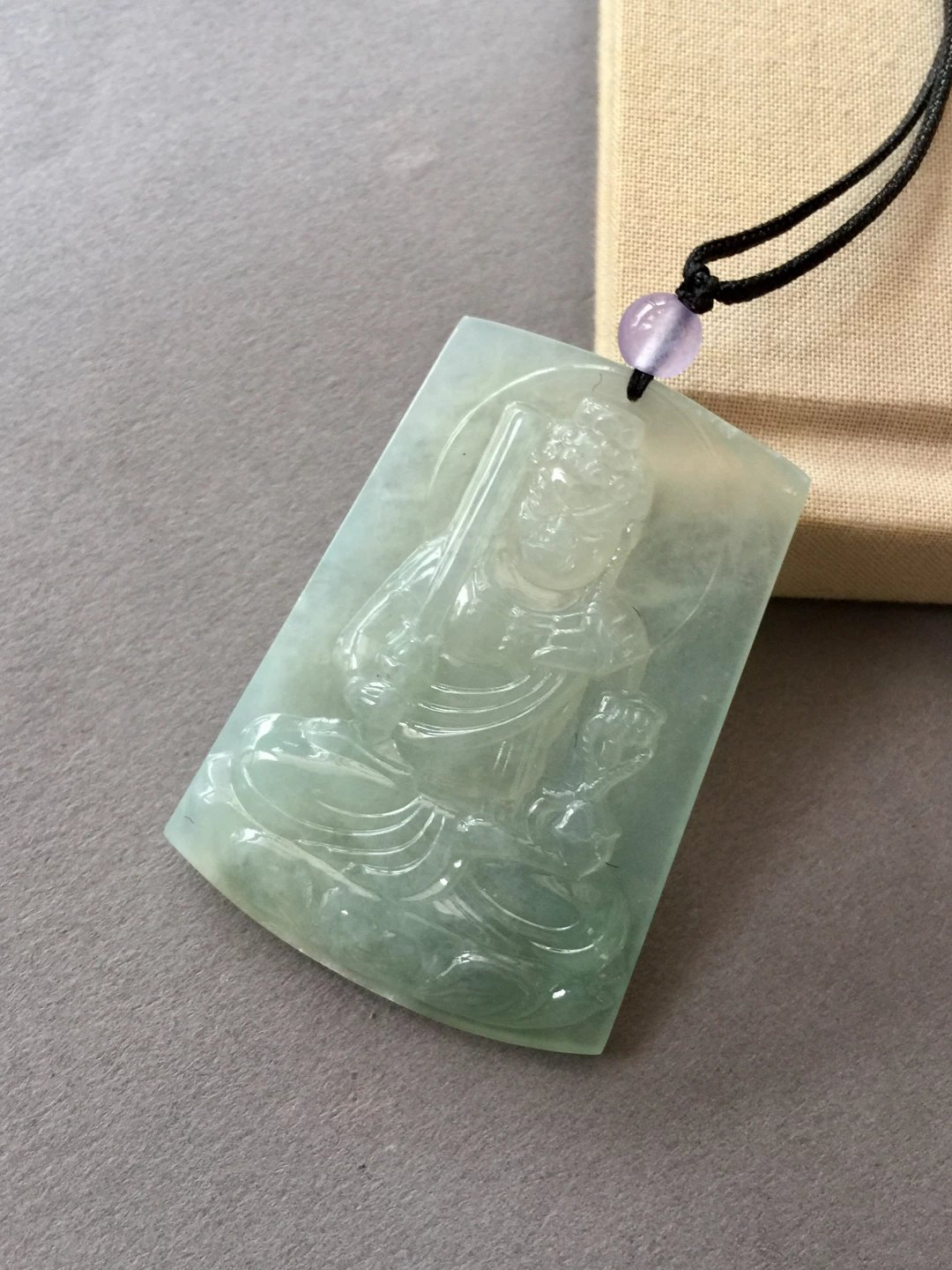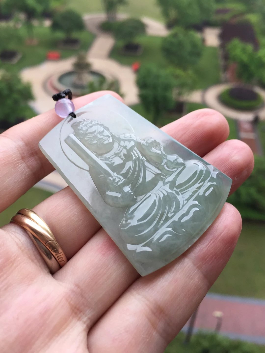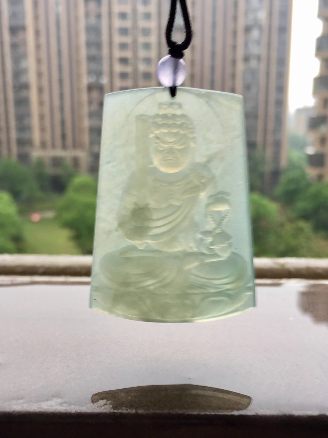 翡翠糯冰种不动尊菩萨,鸡年属鸡小伙伴的本命佛,52.3×38.6×6mm,种水晶莹剔透,淡淡晴水底色漂亮,尺寸立体饱满,大气漂亮。不动尊菩萨亦称不动明王,示现忿怒形降服一切恶魔,佛教密宗八大明王首座。保平安之物。超高性价比,小四价位,推荐