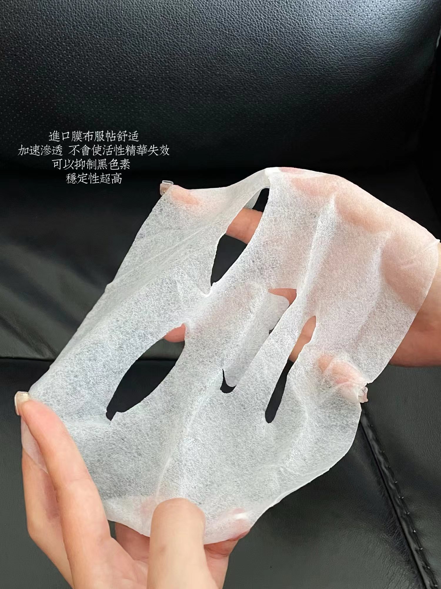 蛋白丝膜布柔软服帖,透气不闷脸。10分钟脸蛋白白嫩嫩。专业美白面膜,这款适合夏季,坚持两天一片那效果太好啦