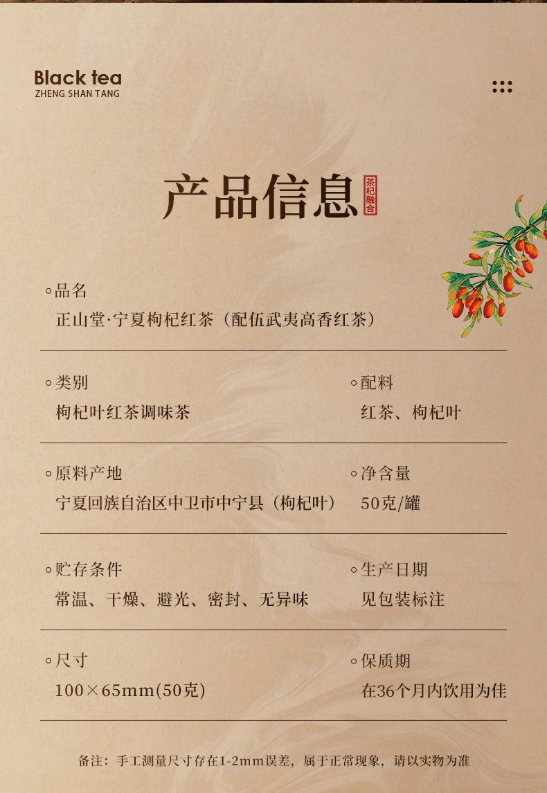 正山堂 宁夏枸杞红茶 配伍武夷高香红茶正宗骏眉中国枸杞叶罐装50g