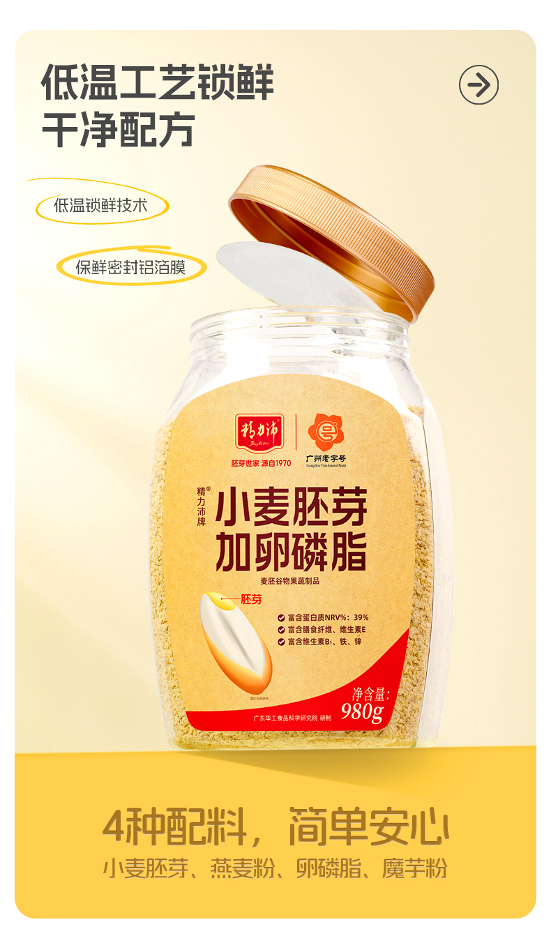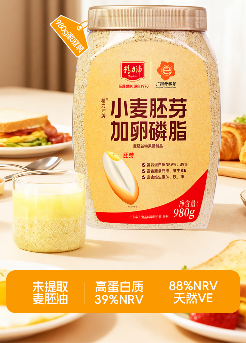 精力沛小麦胚芽加卵磷脂胚芽片杂粮即食冲饮980g大罐装