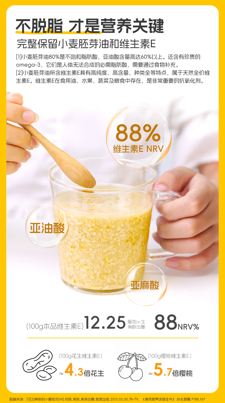 精力沛小麦胚芽高纤高维生素e胚芽片杂粮即食冲饮968g