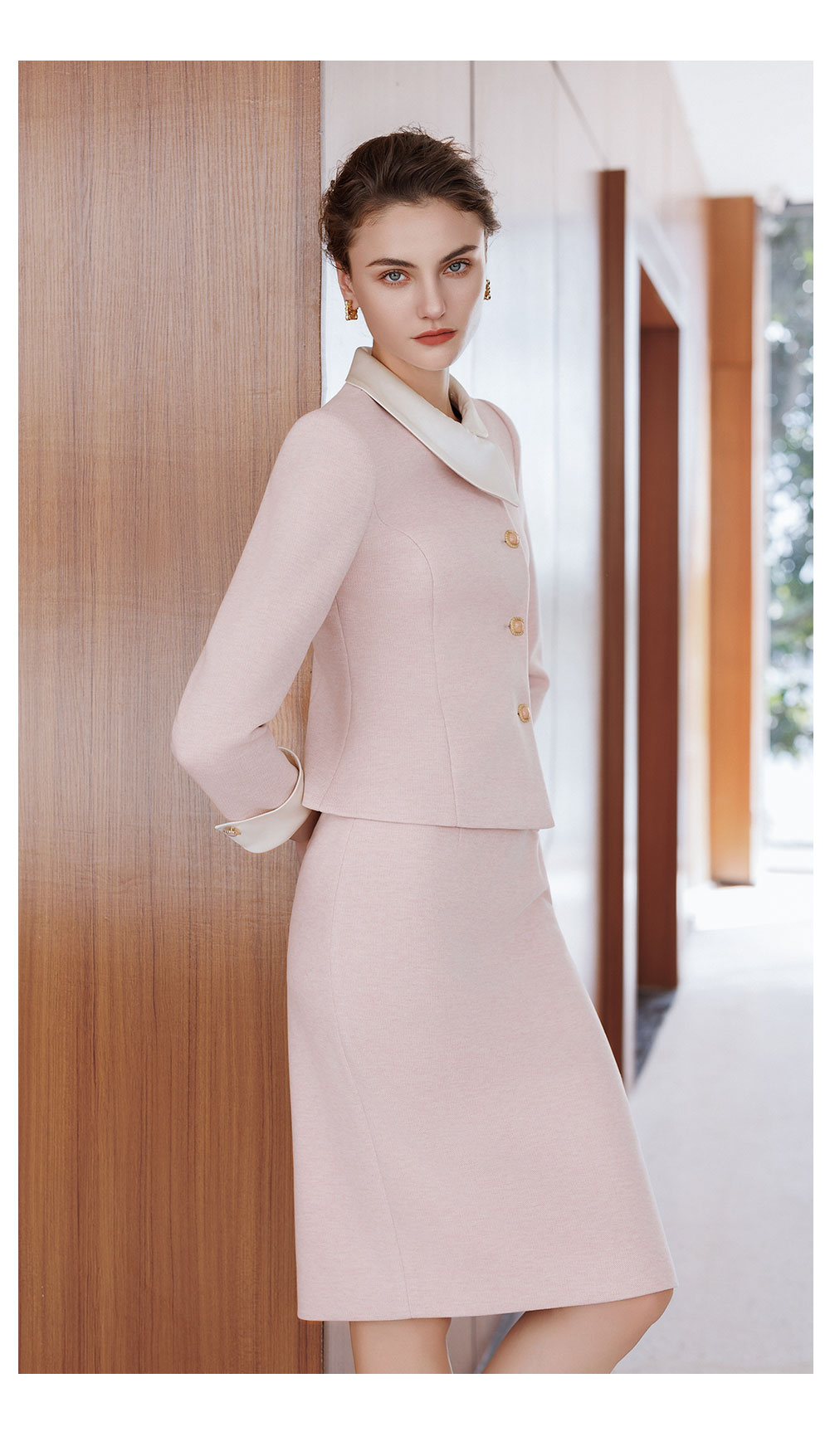 AD拼色名媛范两件套时尚气质女神范西装套装裙高端羊毛呢子职业装