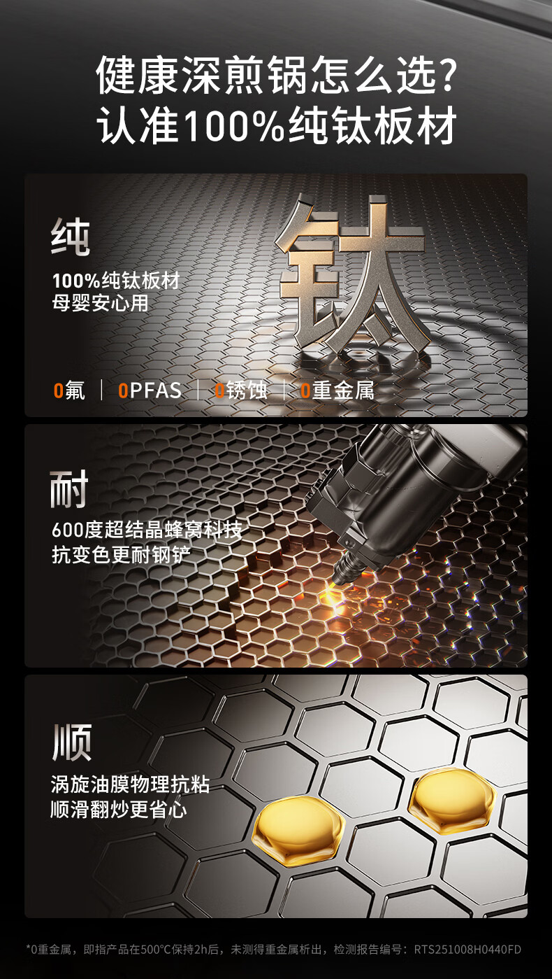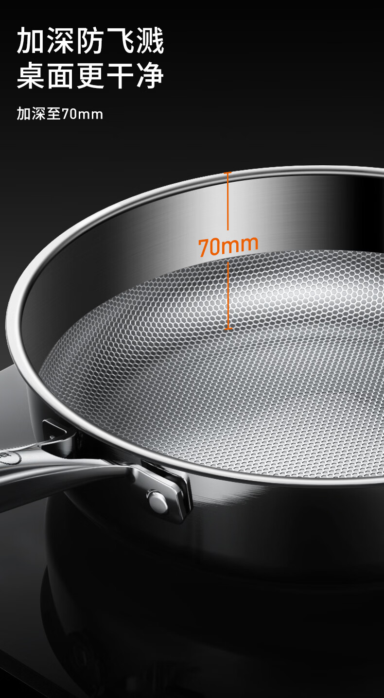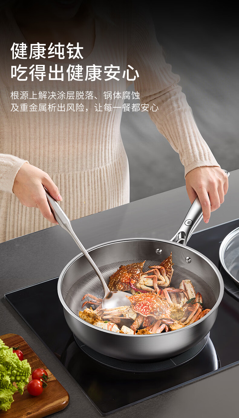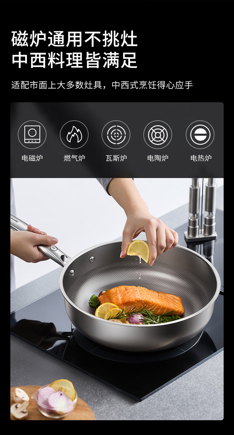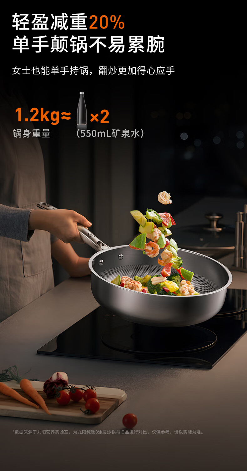 九阳煎锅纯钛0涂层家用炒菜锅钛锅抗粘易洁电磁炉燃气灶通用带盖