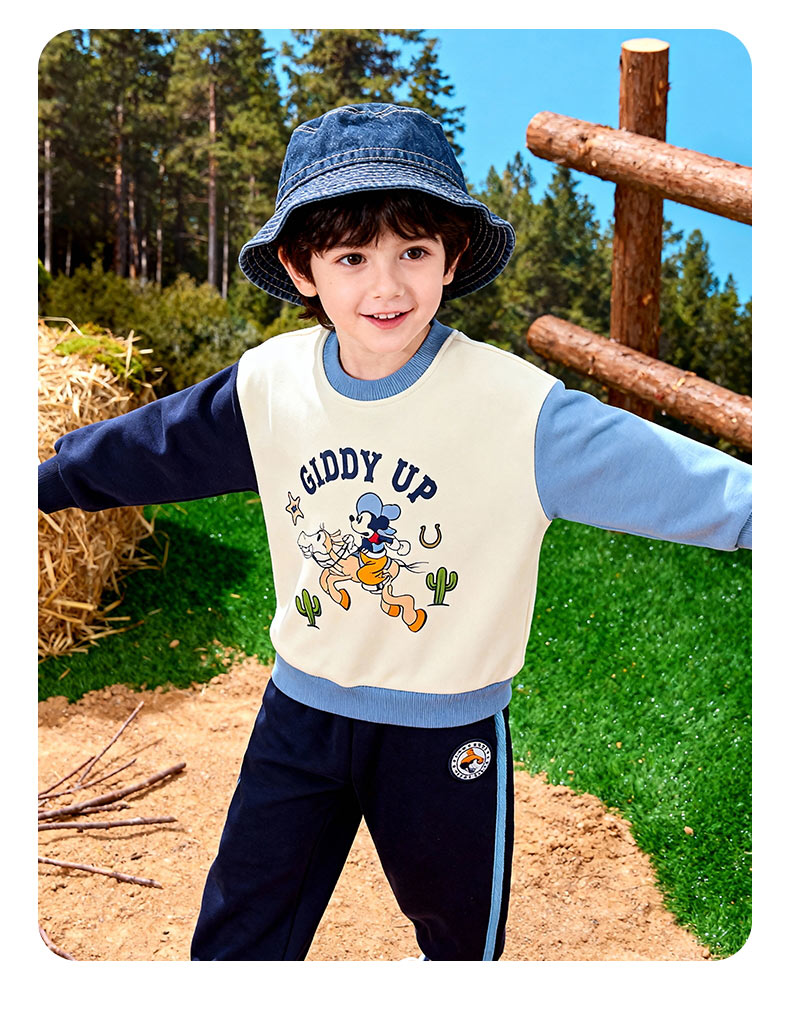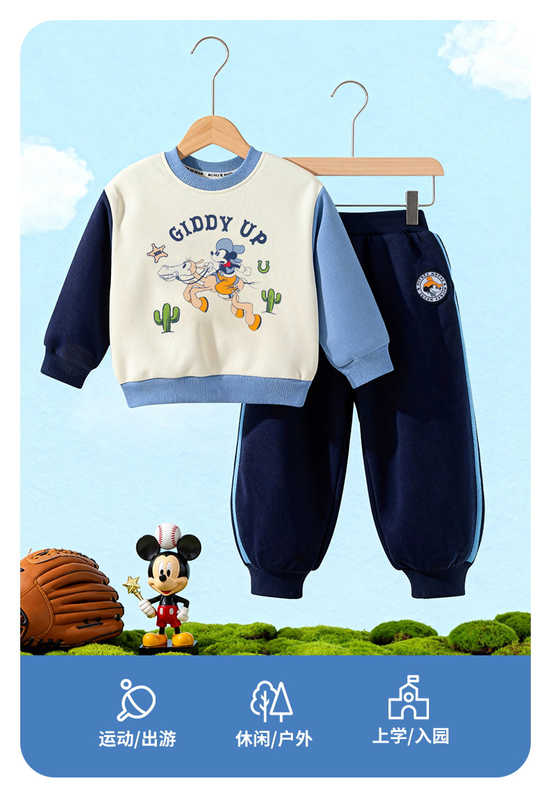 迪士尼(Disney)女童长袖连衣裙甜美休闲外穿拼接卫衣网纱连衣裙2026春季新款裙装ZD1FT016
