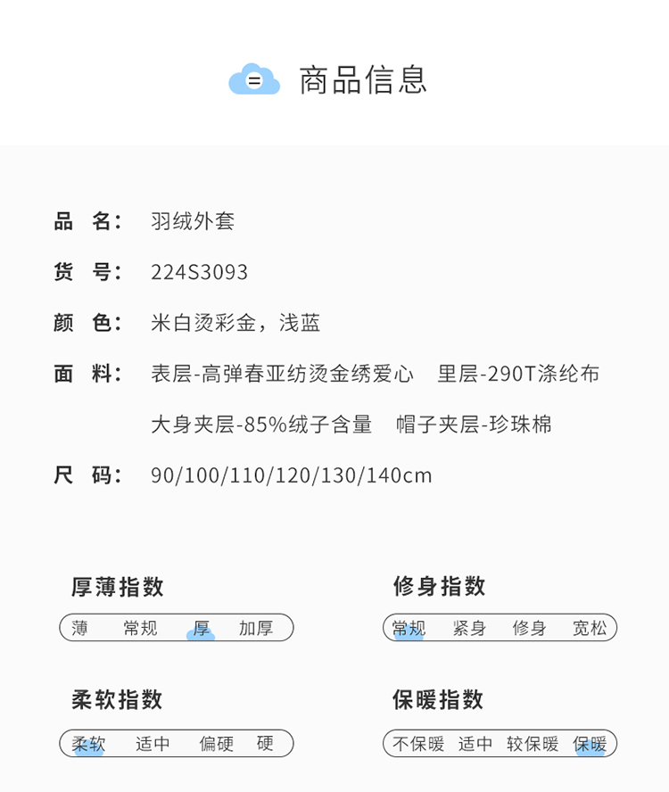 贝贝怡童装秋冬儿童保暖羽绒服甜美可爱女童上衣224S3093