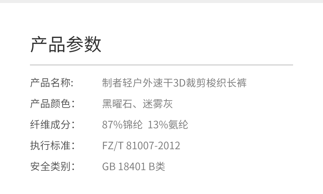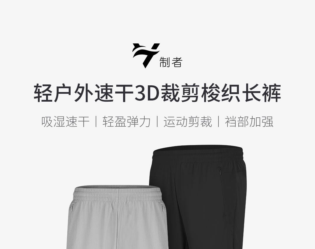 制者轻户外速干3D裁剪梭织长裤
