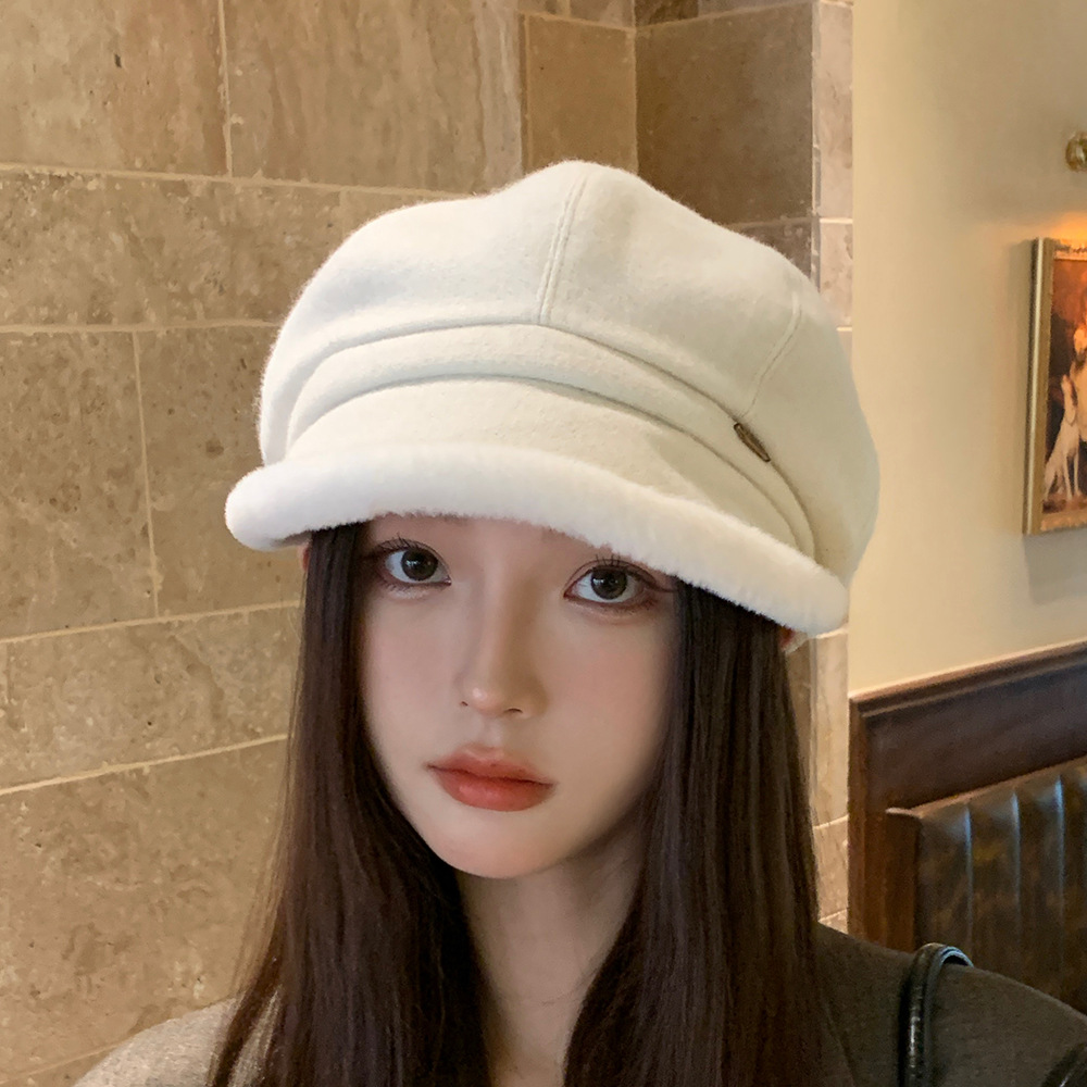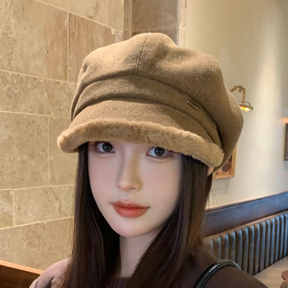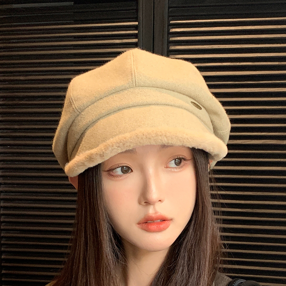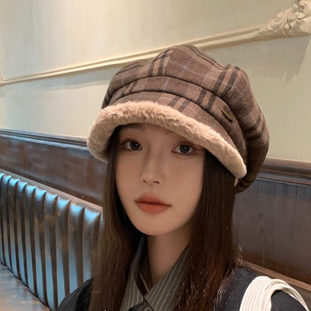 【时尚百搭❗️格纹毛绒八角帽】修饰脸型巨显脸小,毛绒毛呢锁温保暖,文艺新潮更潮搭,保暖女百搭显脸小贝雷帽高级感画家帽QQ