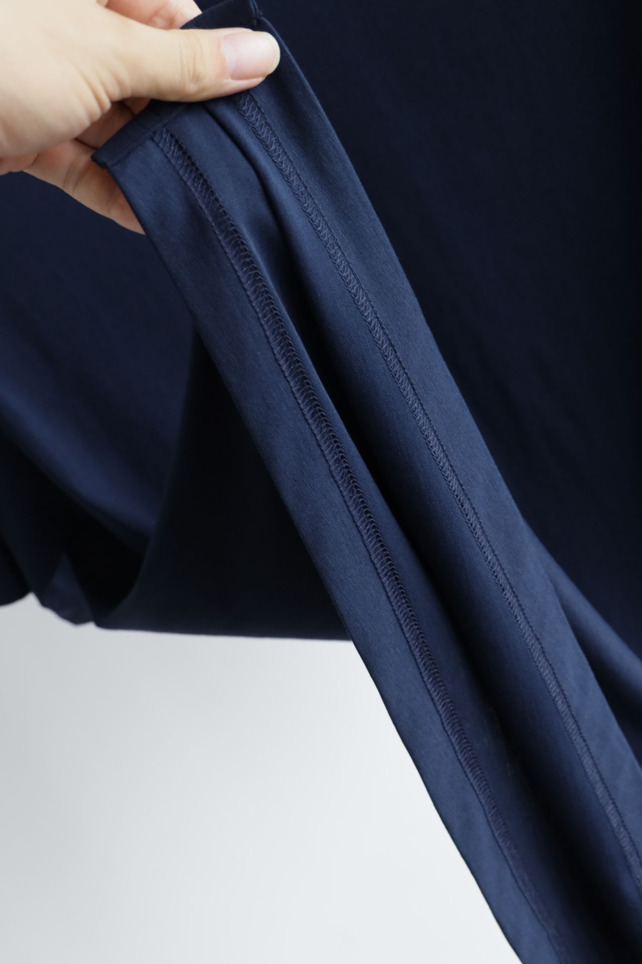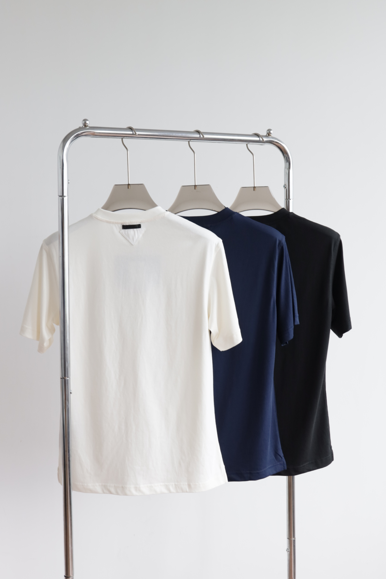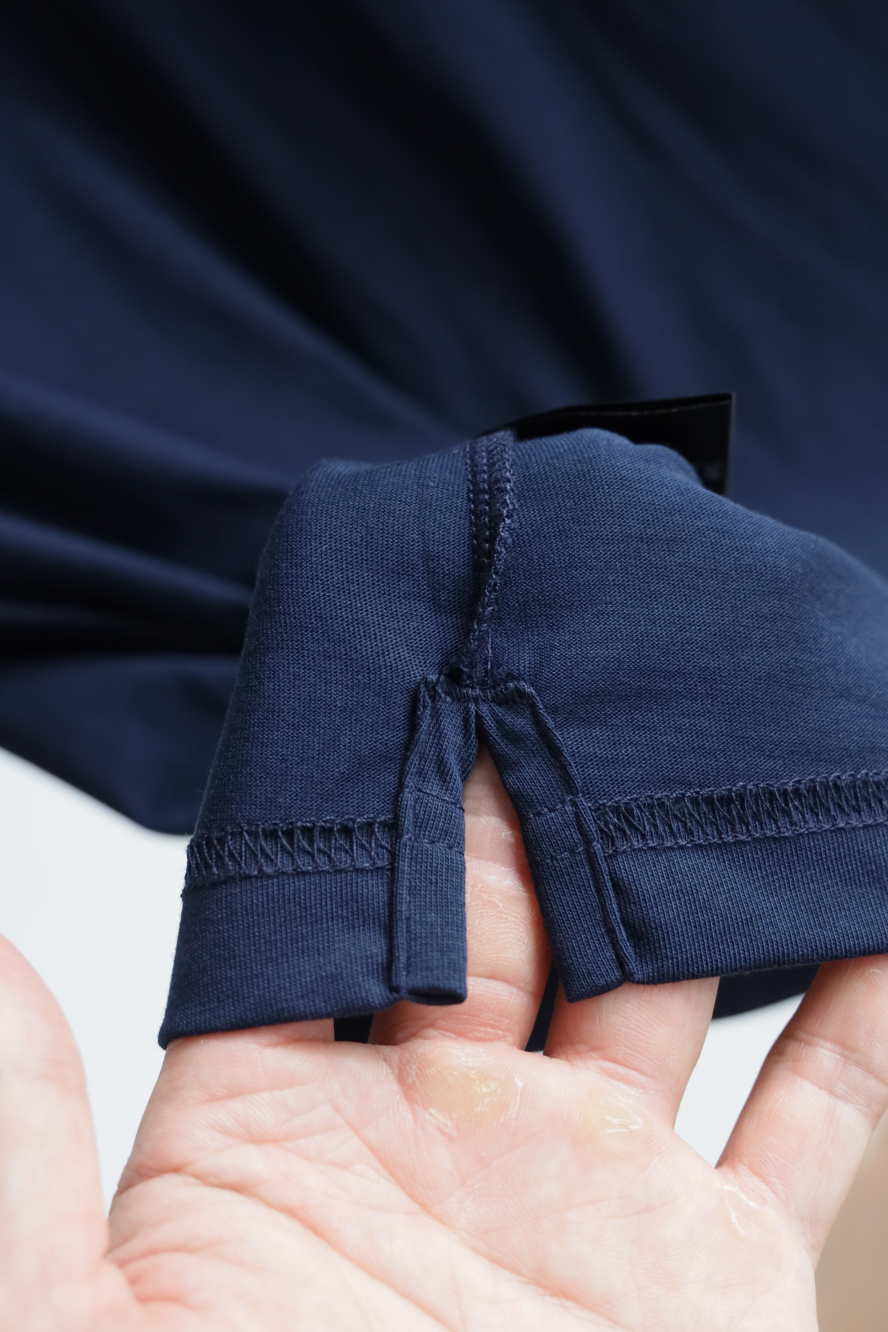 常规合身版型,后颈部做了同色三角贴布标装饰,其他都是纯色基础风格