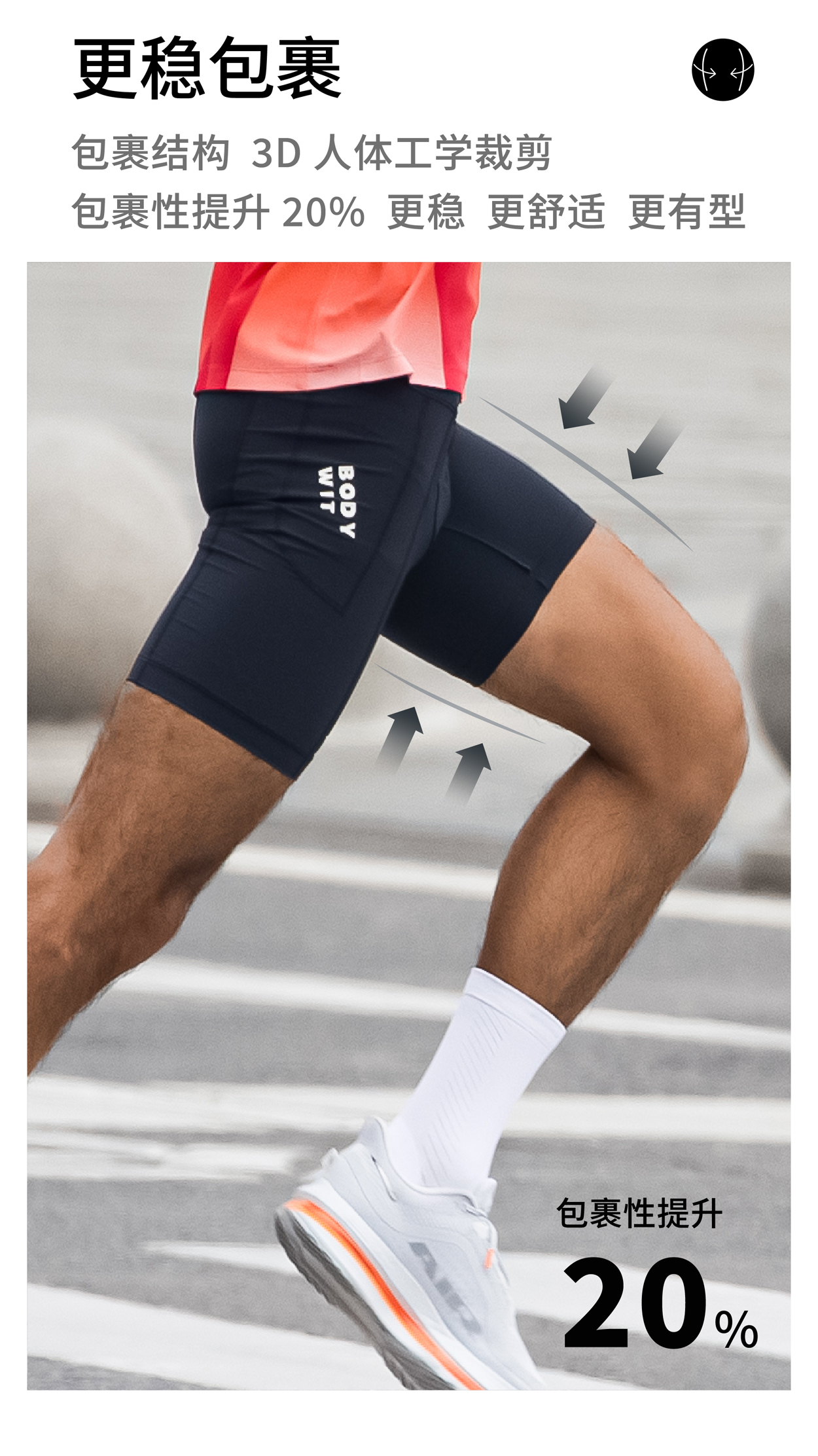 BODYWIT逐光女马拉松PRO短裤速干不粘身防磨大手机仓跑步运动