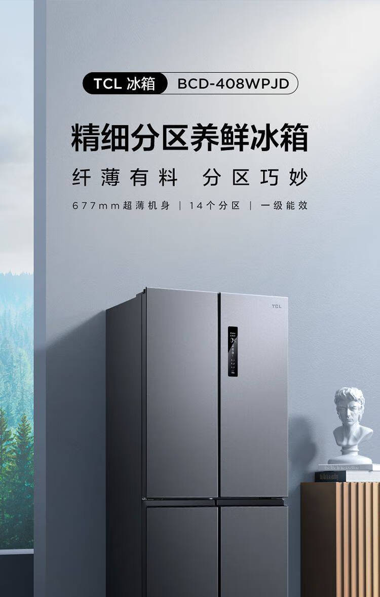 TCL BCD-408WPJD风冷无霜一级变频十字四门多门电冰箱WIFI智控品 R410S1-U烟墨蓝