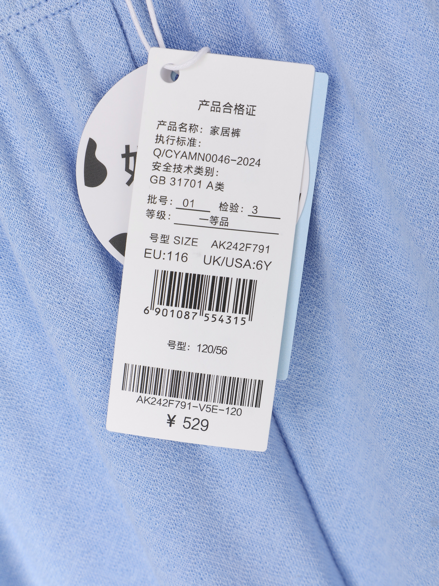 【春上新】8楼爱慕儿童Aimer Kids男孩奶皮静谧空间家居长裤AK242F791,吊牌价529元