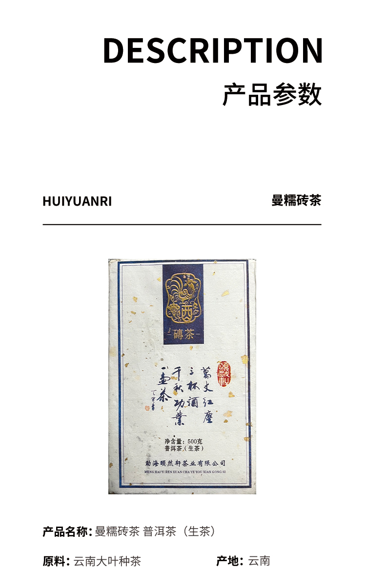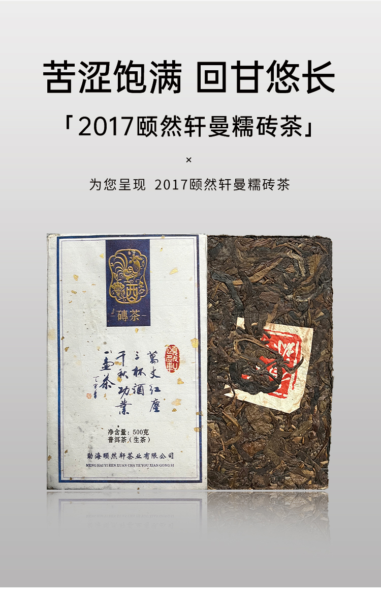 【会员日直播】 2017年颐然轩砖茶 普洱生茶 500克/块 买一送一买二送三