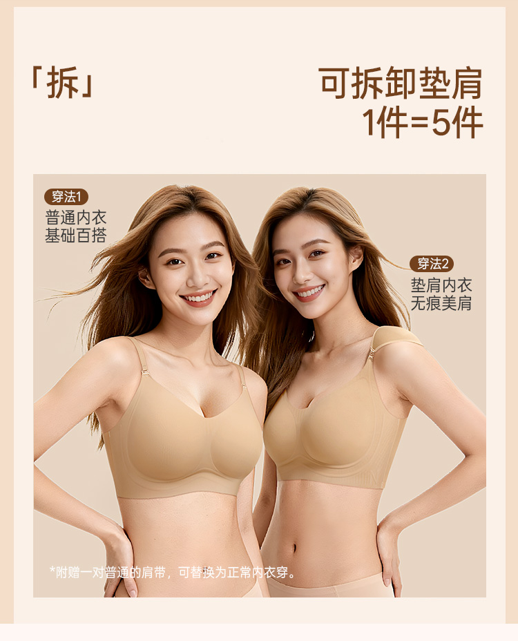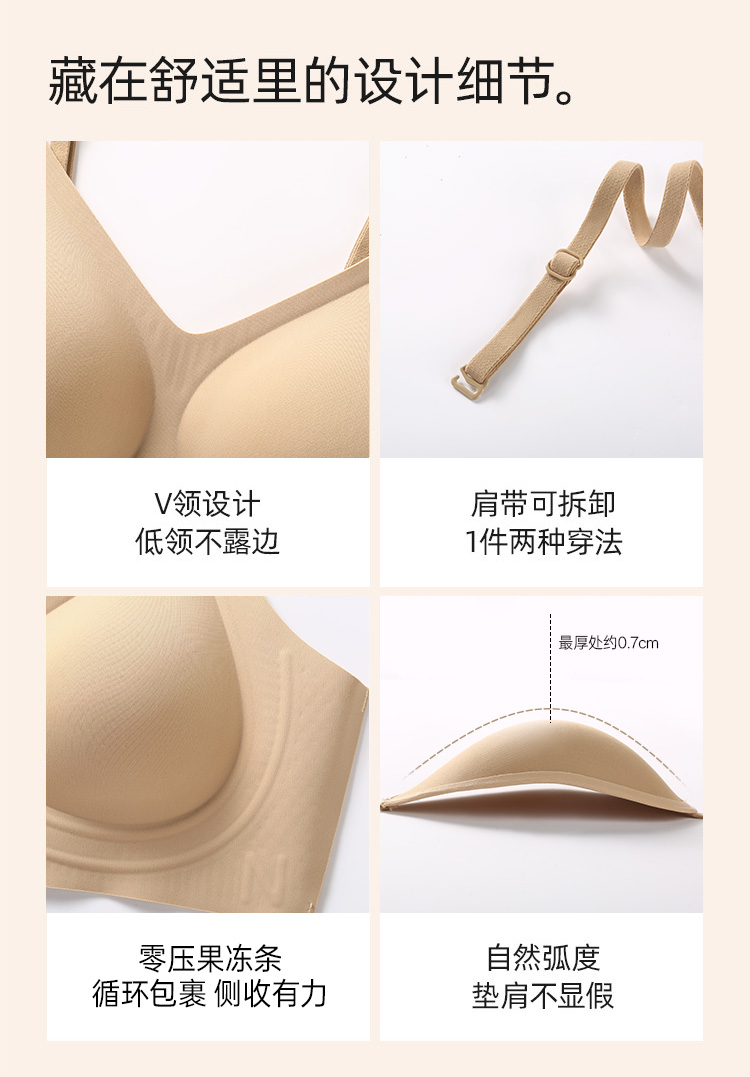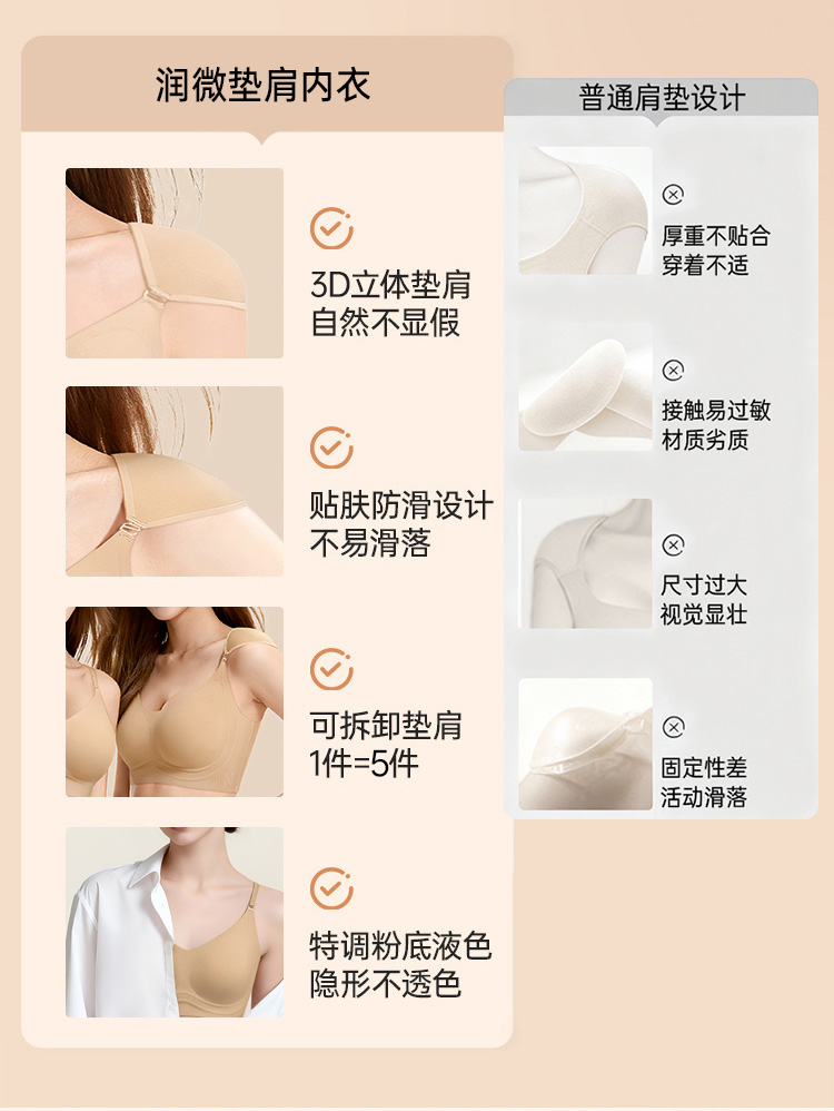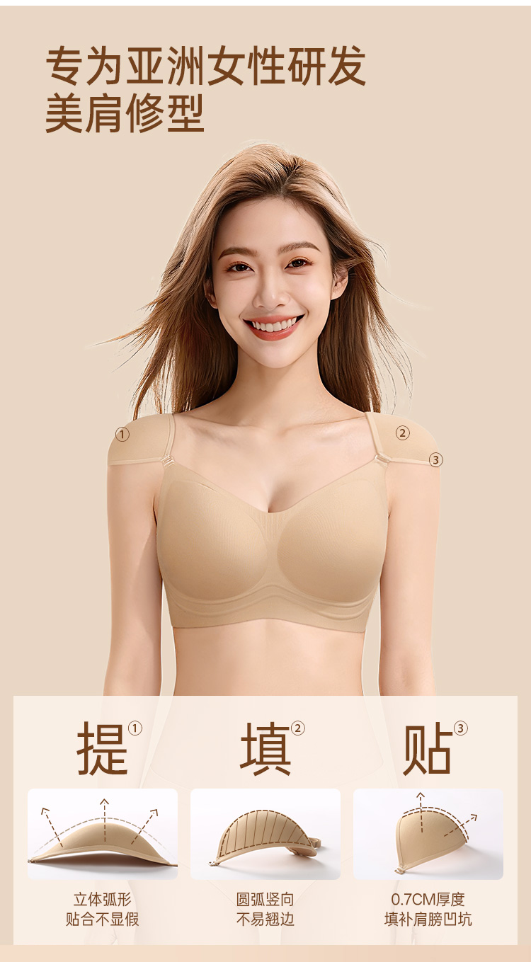 A1-【A-C杯】润微垫肩内衣女直角肩神器隐形小胸显大收副乳防下垂粉底液文胸 袭蜜婉韵