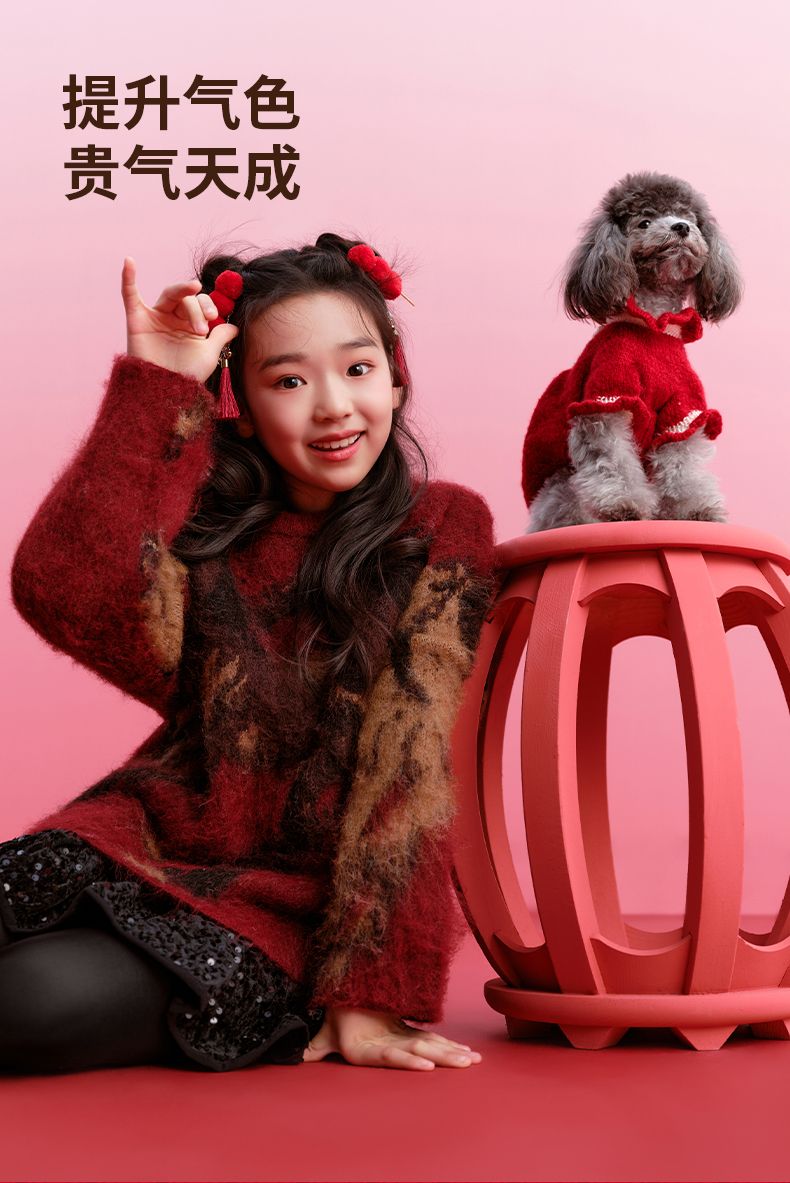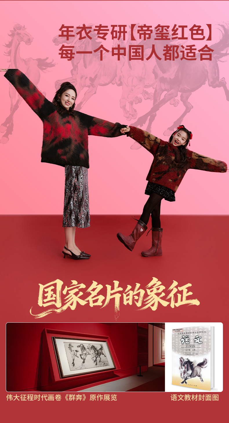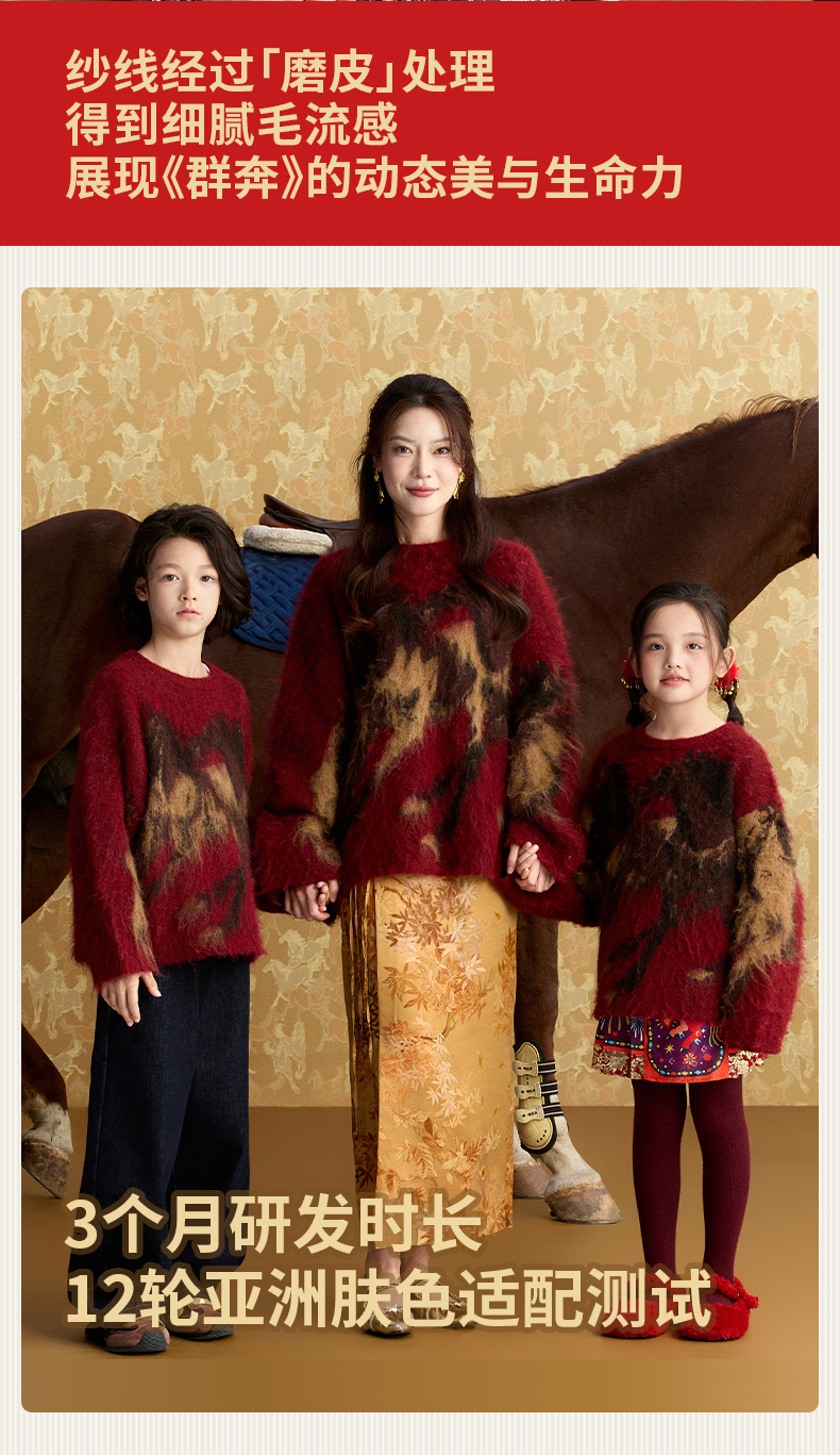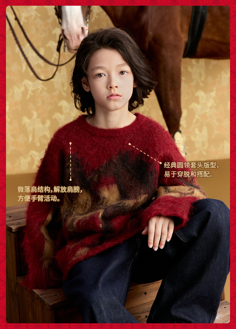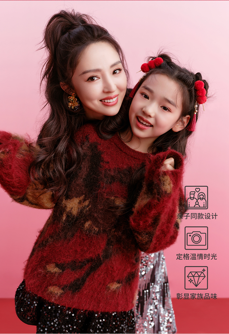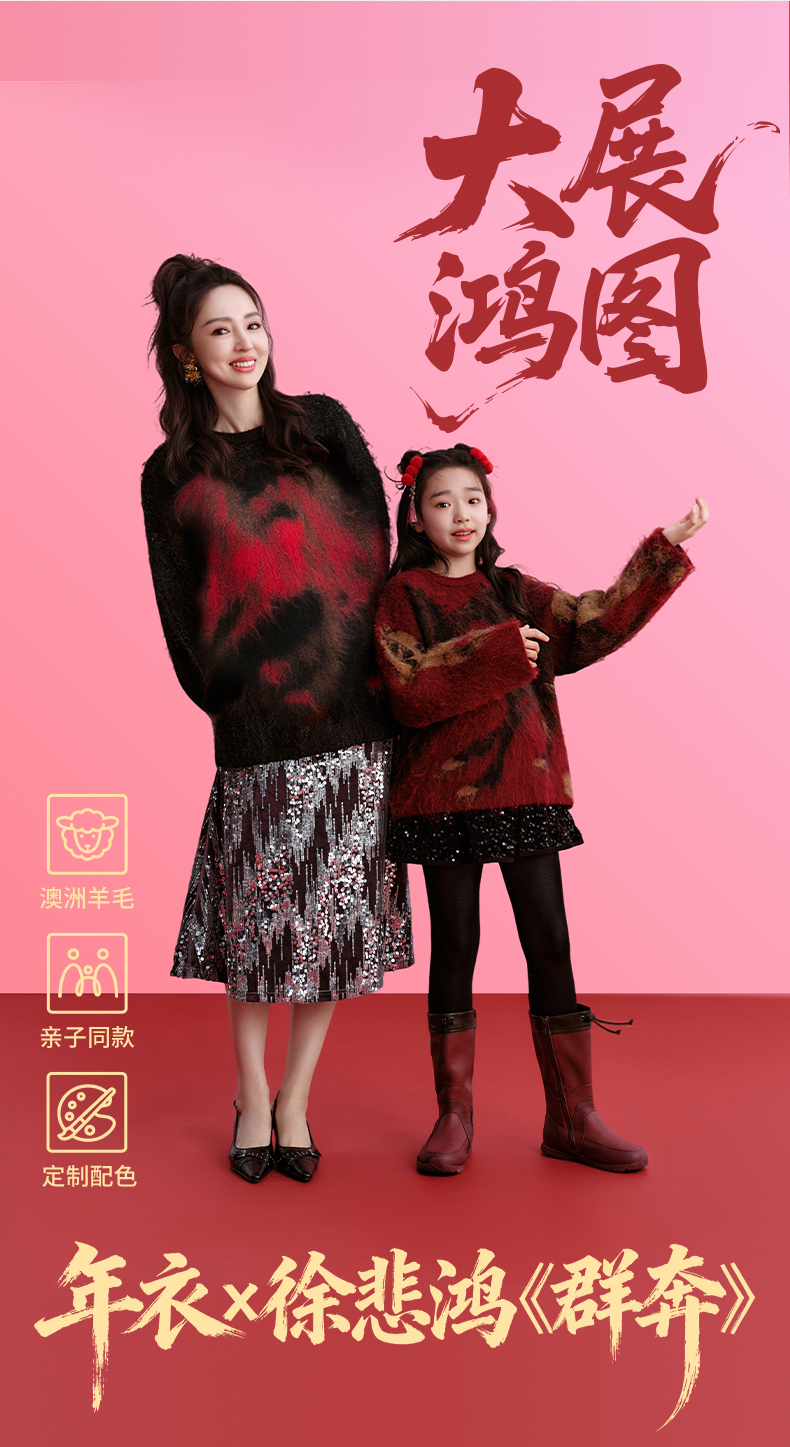 徐悲鸿联名年衣童装亲子毛衣冬装新中式羊毛针织衫大展鸿图毛衣