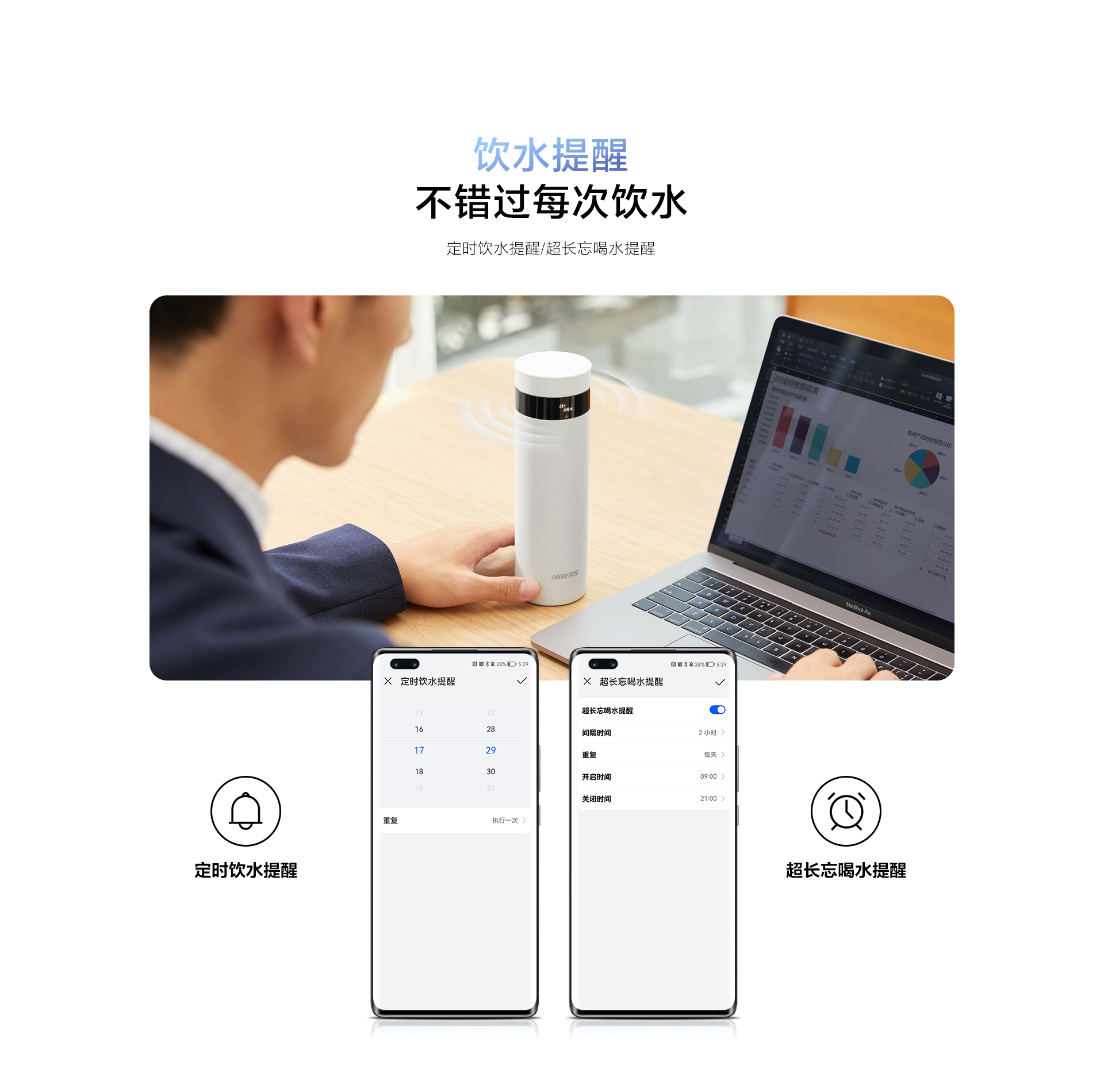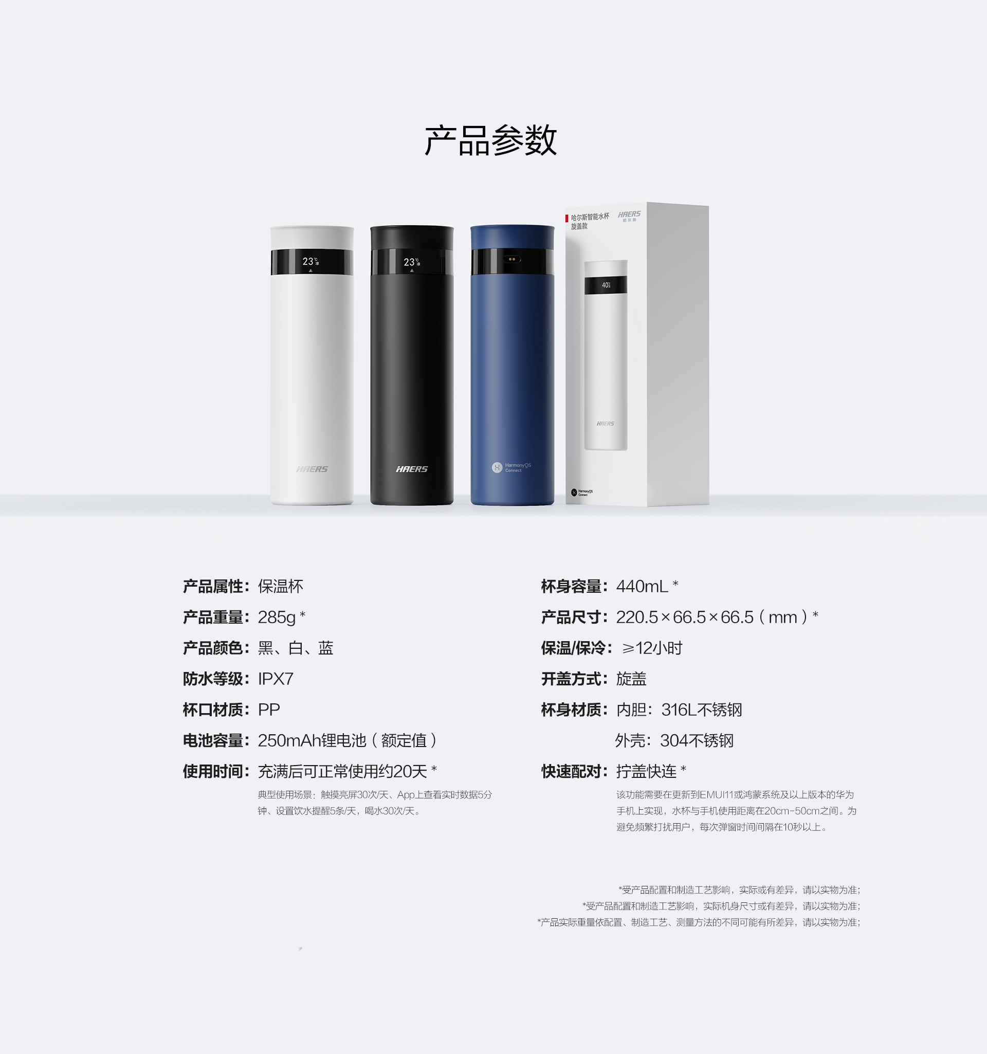 华为智选 哈尔斯智能保温杯水杯 旋盖款(支持鸿蒙智联)