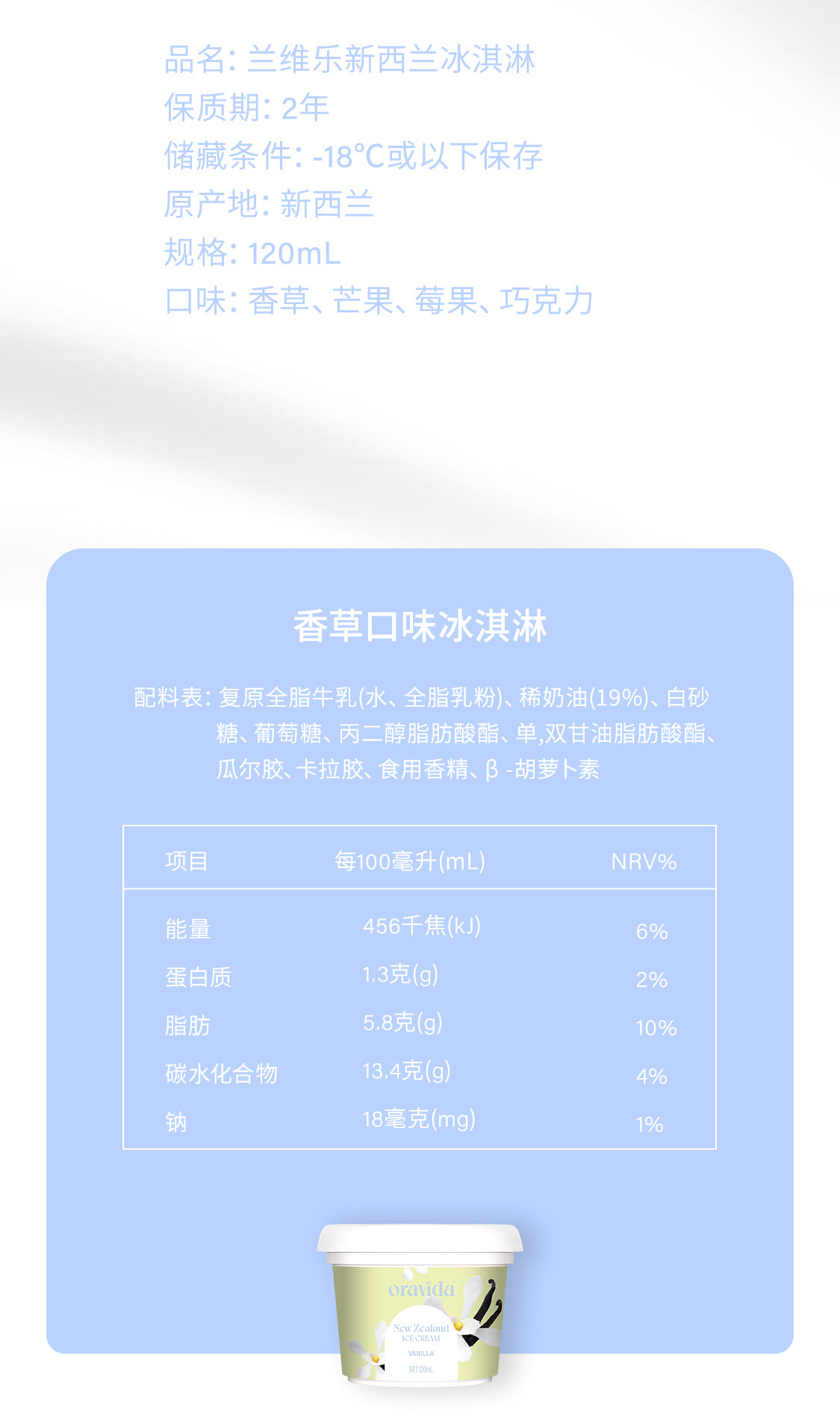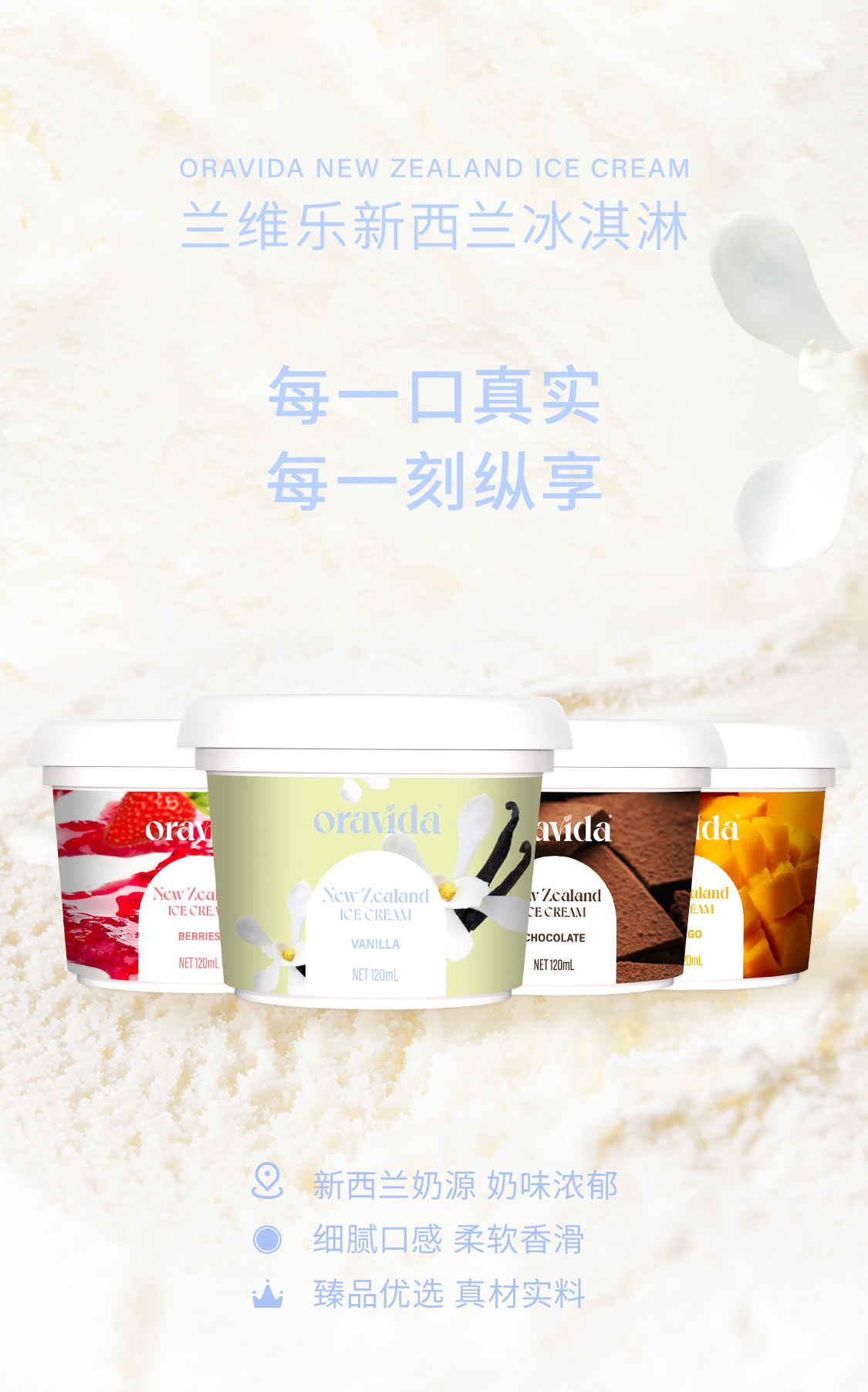 【8杯装-可挑选口味】新西兰原装进口冰淇淋120ml*8