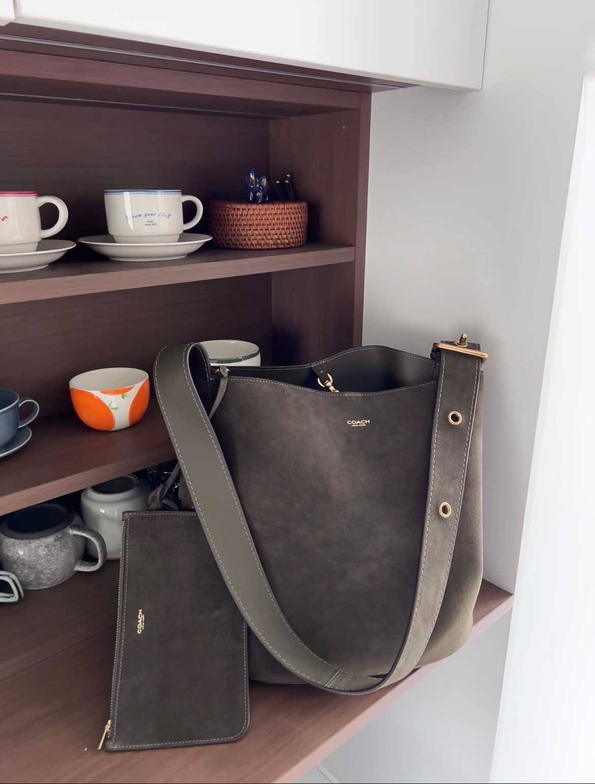 💥“复古麂皮绿”一背就贵!原价¥4500的Coach发财桶现在¥1899直邮到手🟢🪣纽约氛围直接拉满!