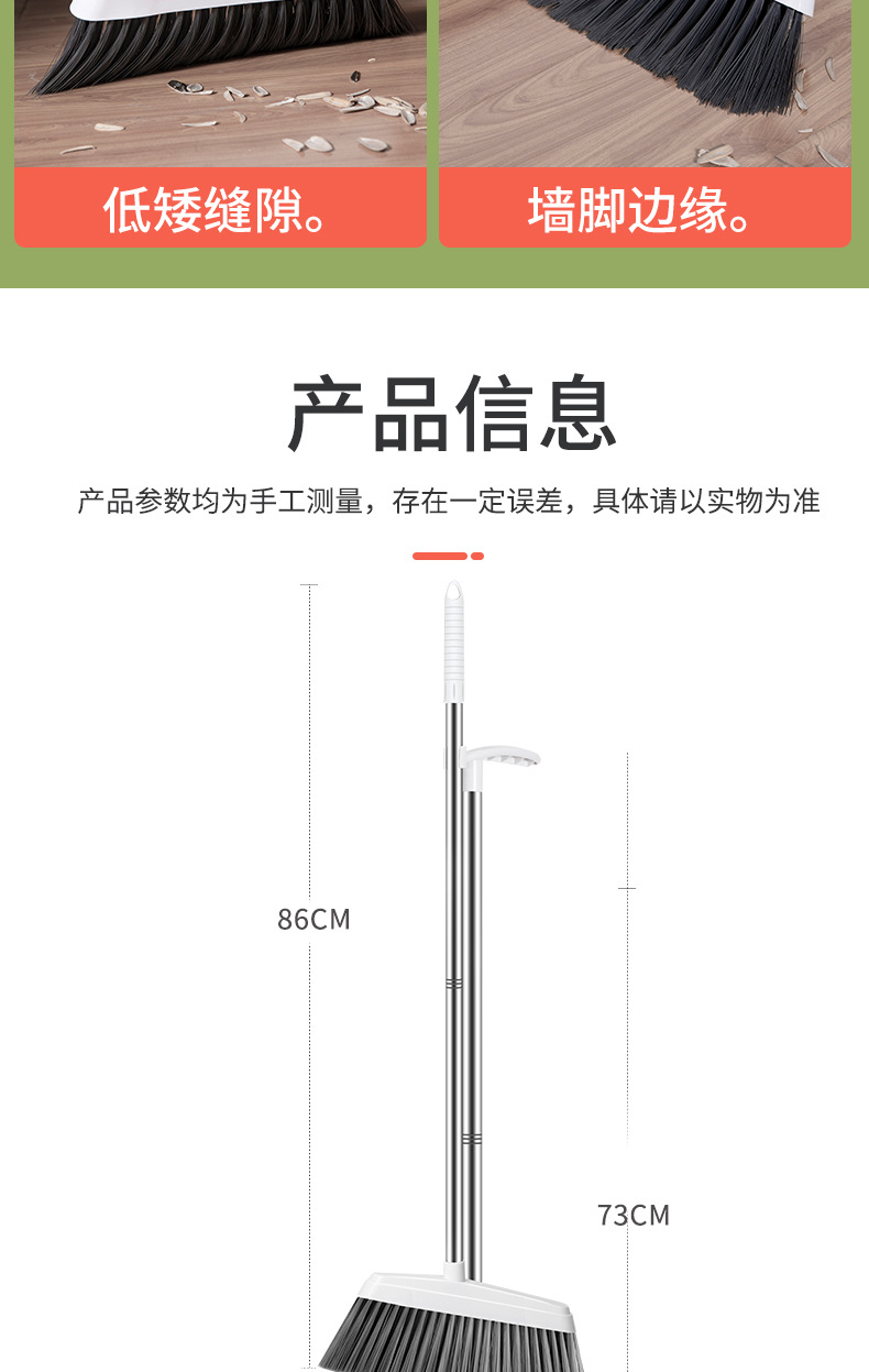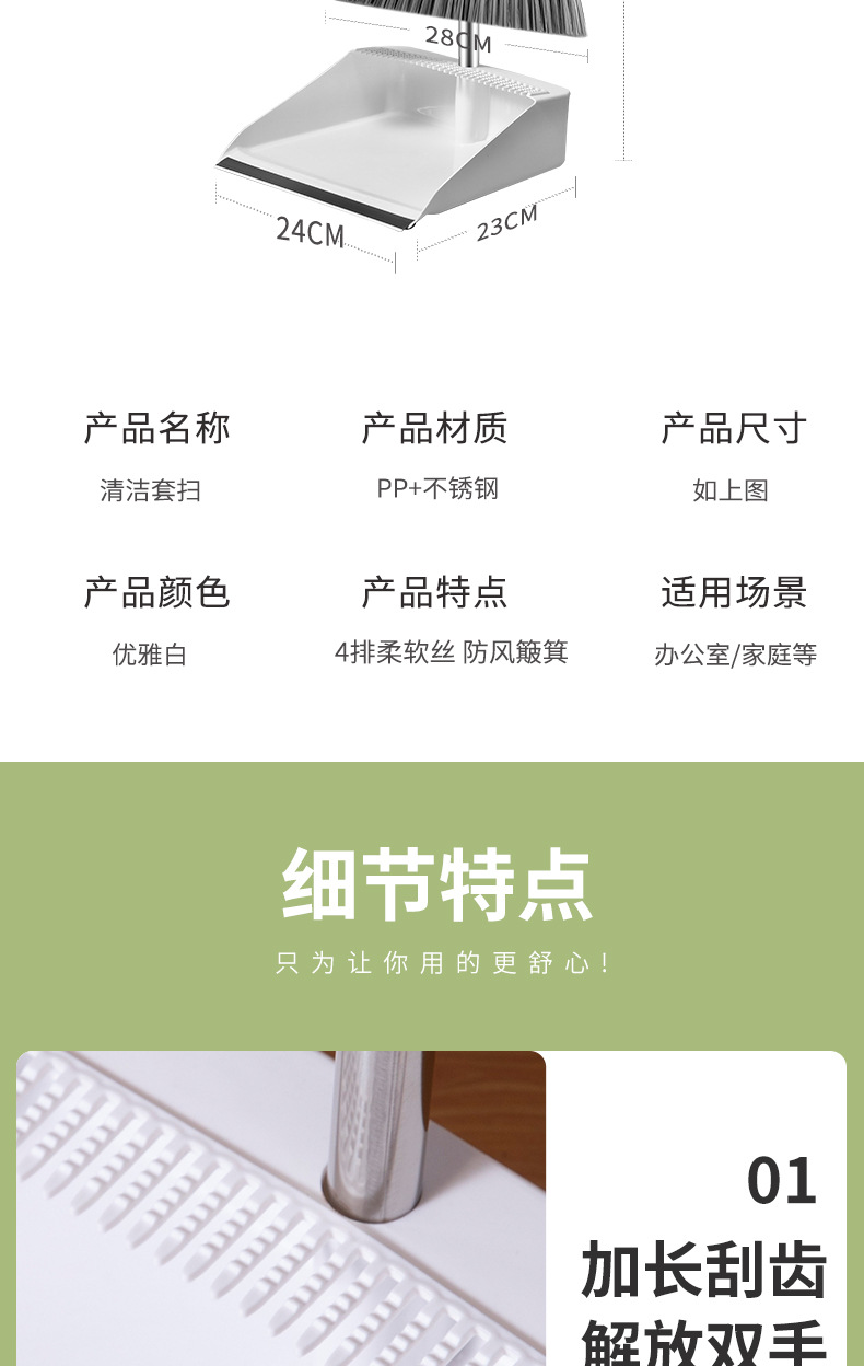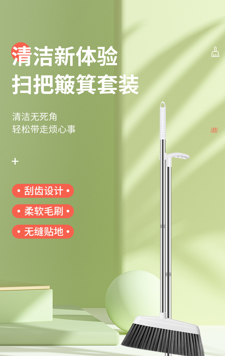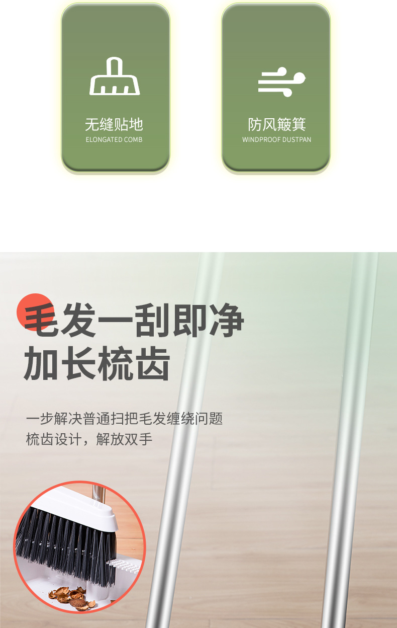 【9.9秒杀❗️扫把簸箕套装组合】刮齿设计 柔软毛刷 无缝贴地 加长梳齿 一刮即净!软毛扫帚扫把套装卫生间、厨房家用清洁笤帚马年春节新年大扫除