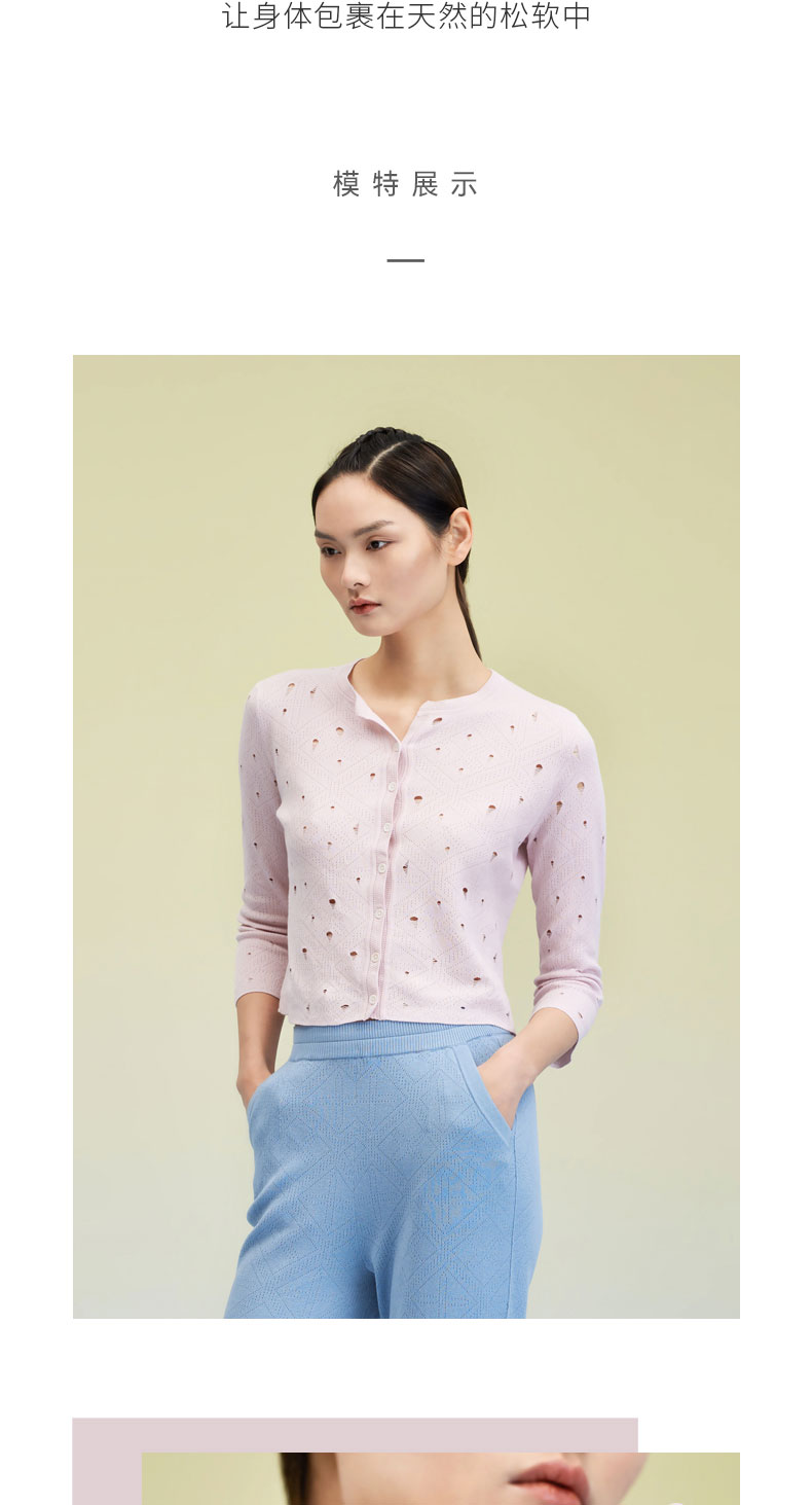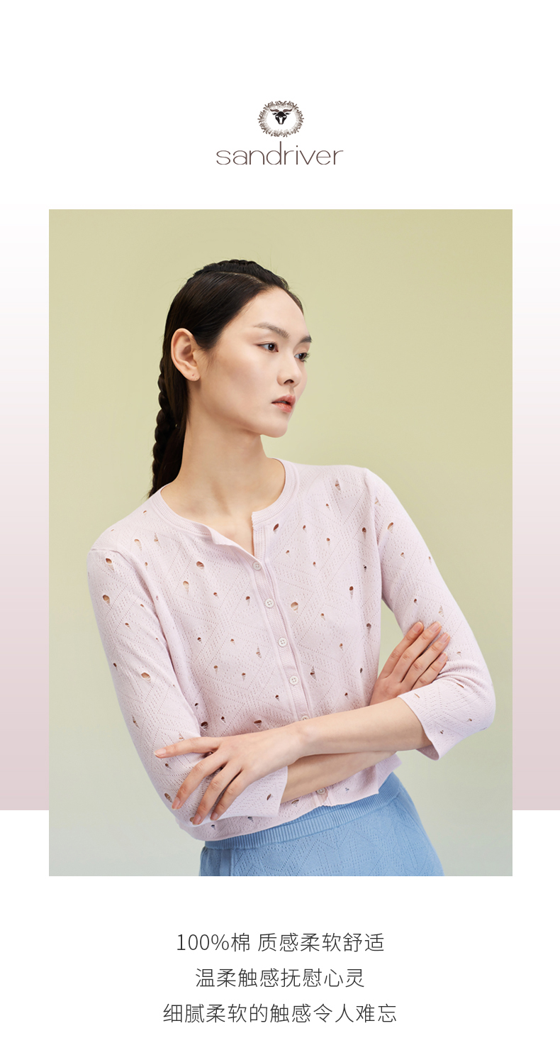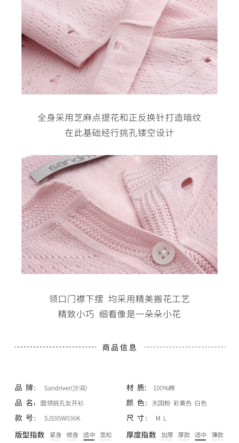 圆领挑孔女开衫 SJS95W036K