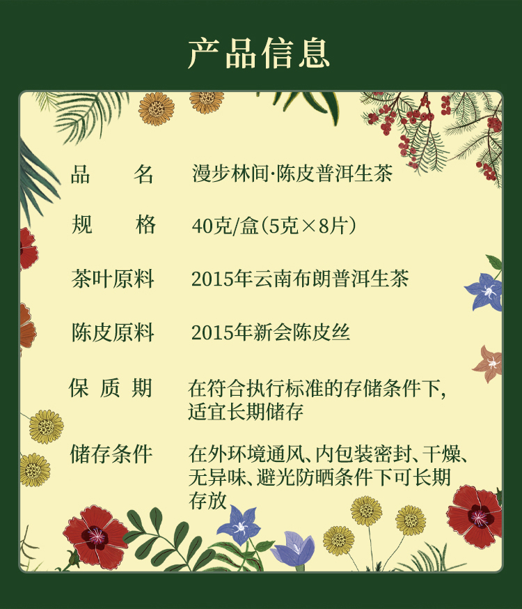 漫步林间·陈皮普洱生茶(40克)