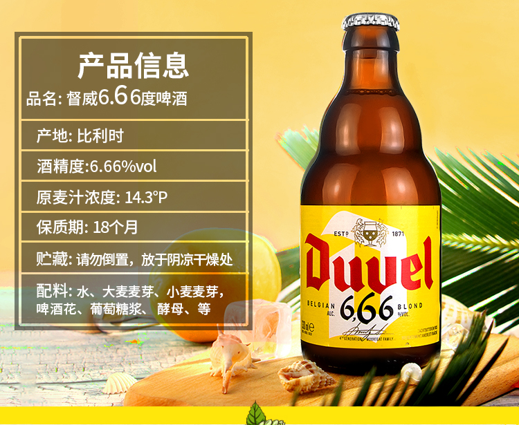 比利时督威 666 艾尔啤酒 6.66%vol 330ml