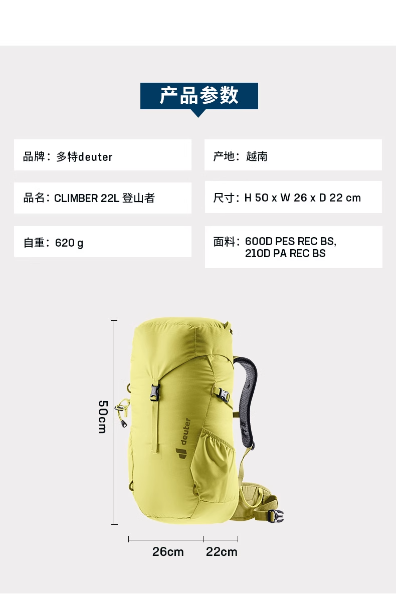 德国多特deuter登山者22LClimber轻便儿童登山包短途户外青少年背包