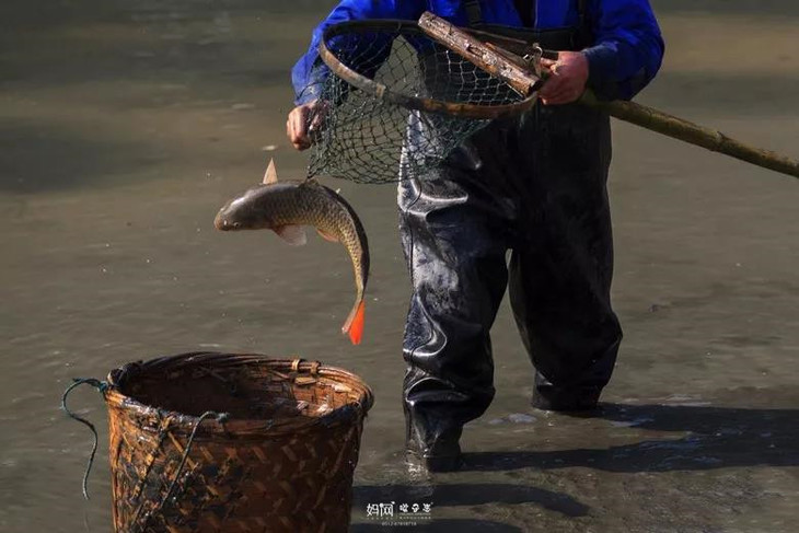 现场打捞生态环境下自然生长的仙山湖生态鱼