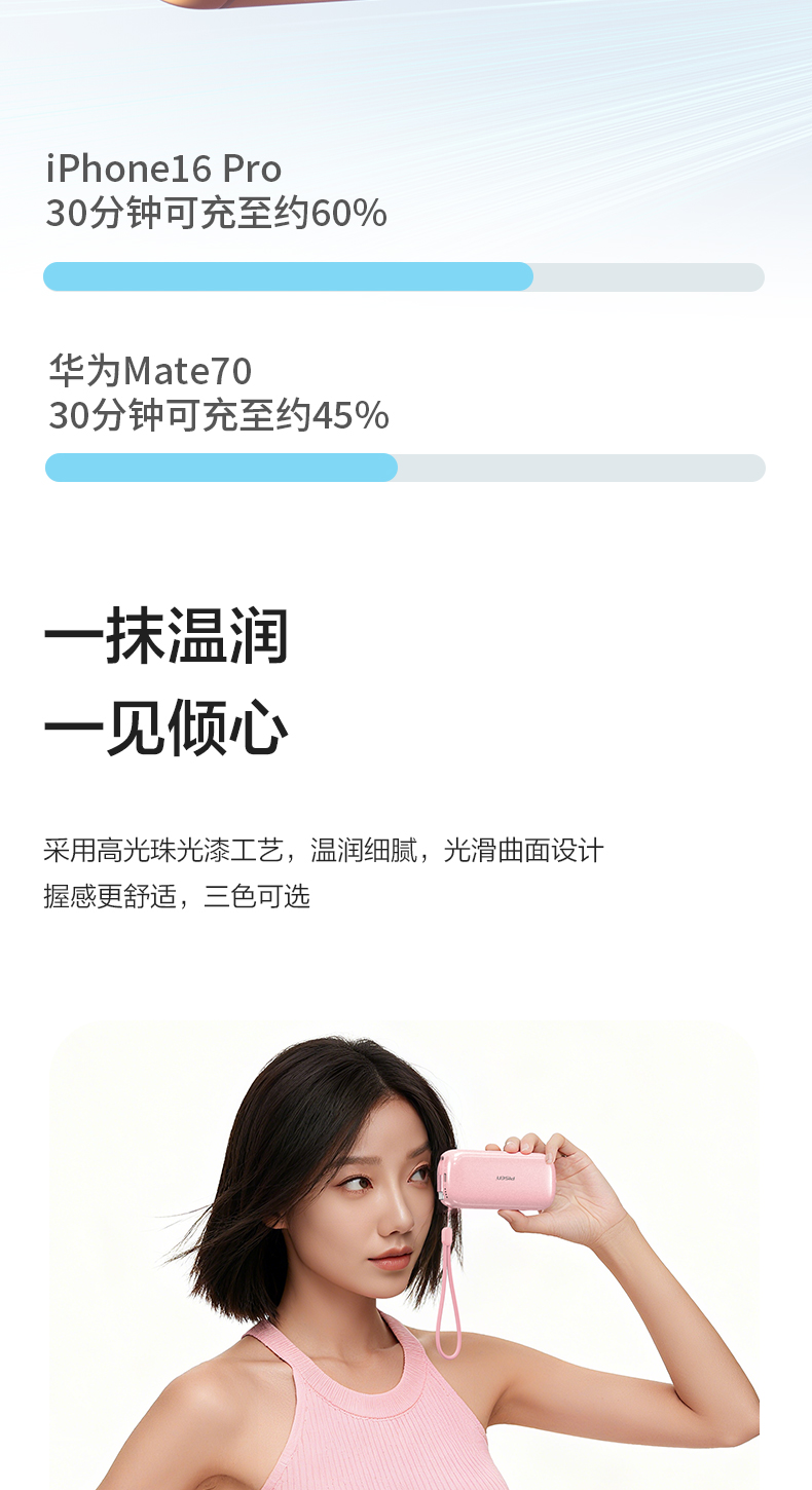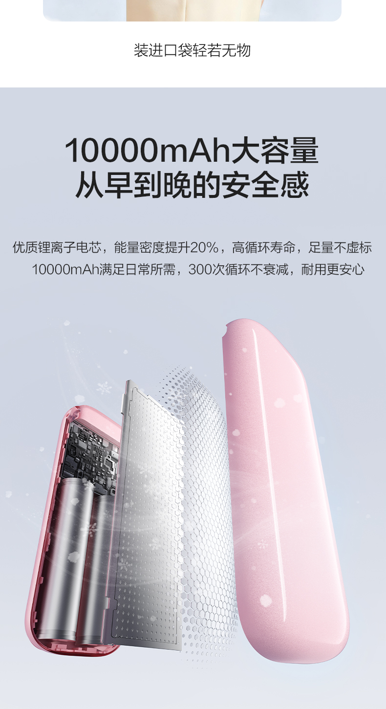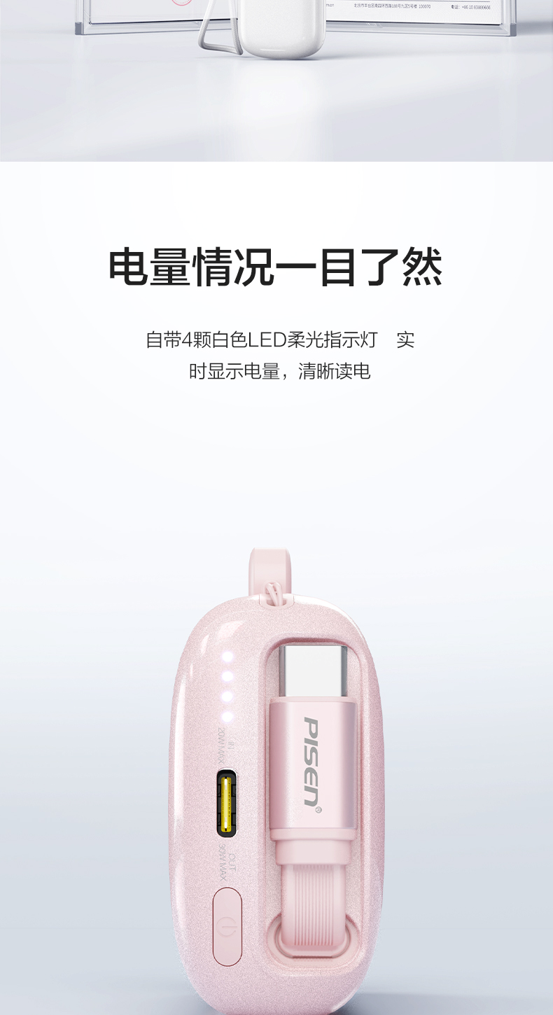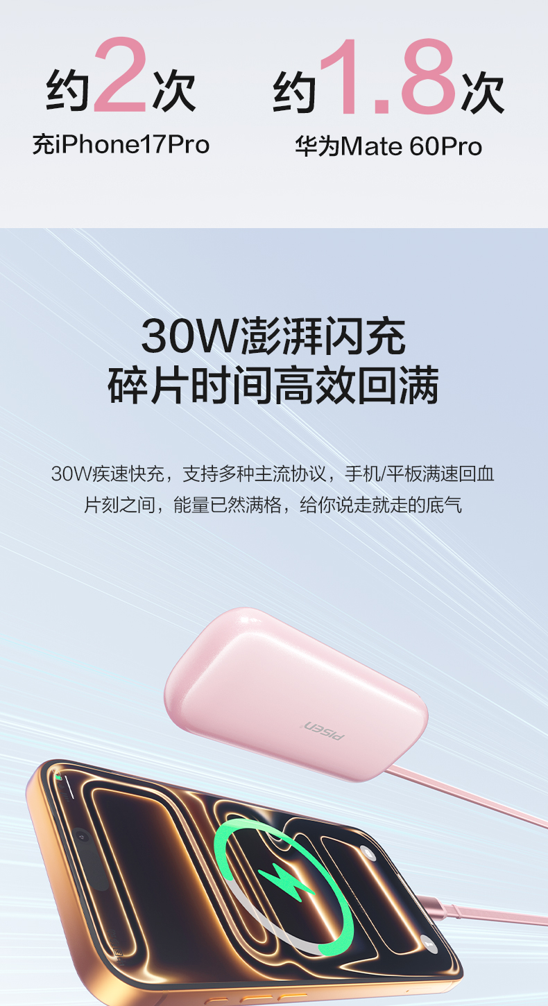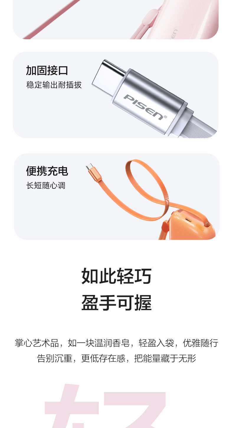 品胜 小肥皂30W伸缩线移动电源10000毫安 自带收缩Type-C线输出充电宝