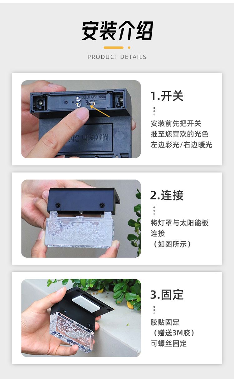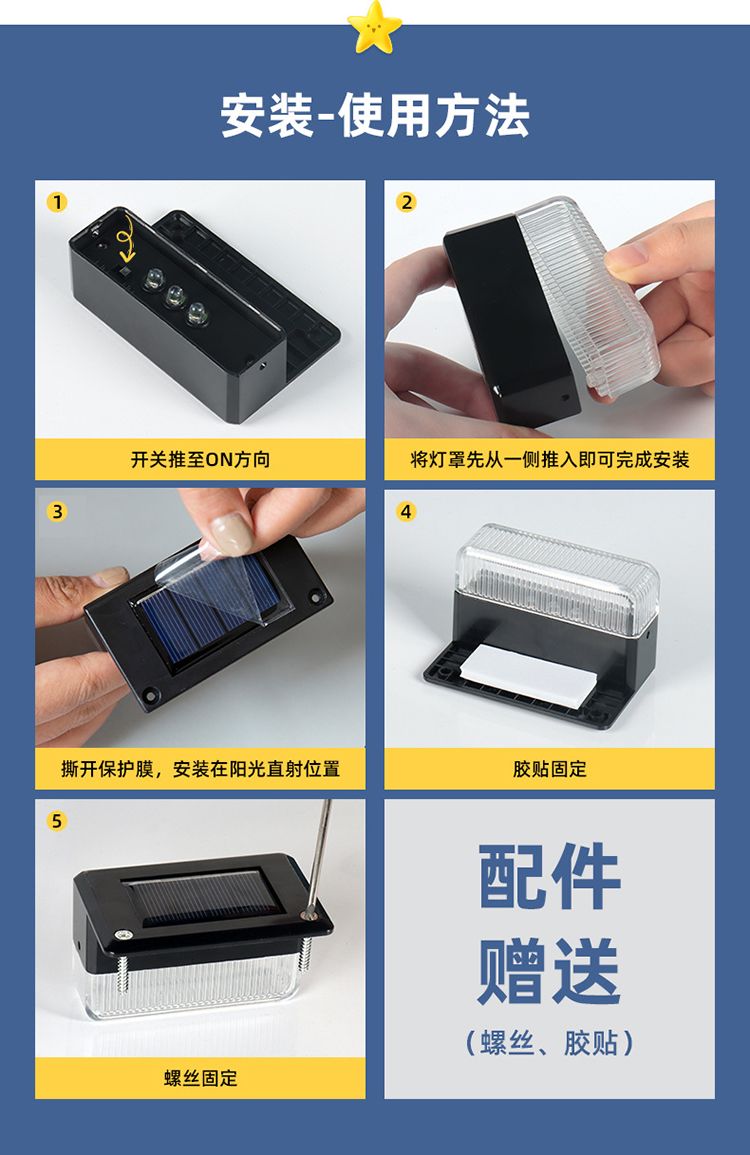 【太阳能不用电】太阳能庭院灯氛围灯花园布置灯阳台灯顶楼围栏灯装饰台阶照明壁灯