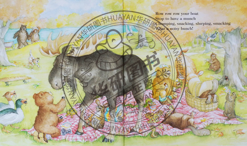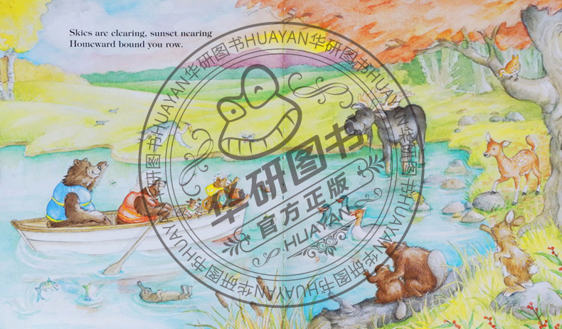 绘者Trapani将一首简单的儿歌转变为精彩纷呈的冒险旅程。附加的几段非常巧妙,让经典变得别具一格。通过轻柔的水粉画,Trapani描绘了憨态可掬的棕熊一家和它们忠实的宠物狗的乘船远足……一连串的动名词有着相同的头韵,小朋友读起来朗朗上口。作者原创的每一段都完美地契合传统旋律,每一幅插画都描绘出了温暖、兴奋和幽默感。