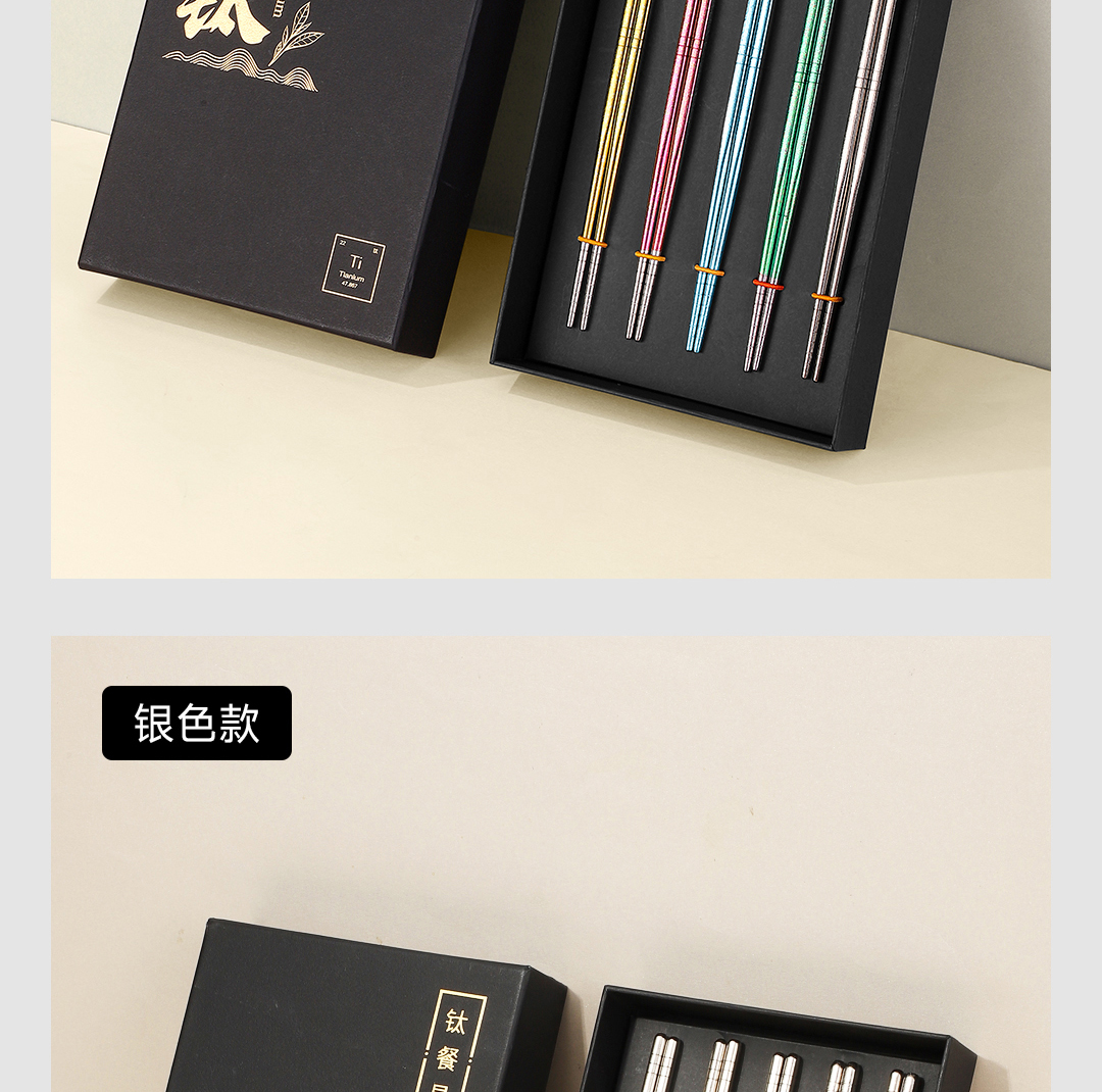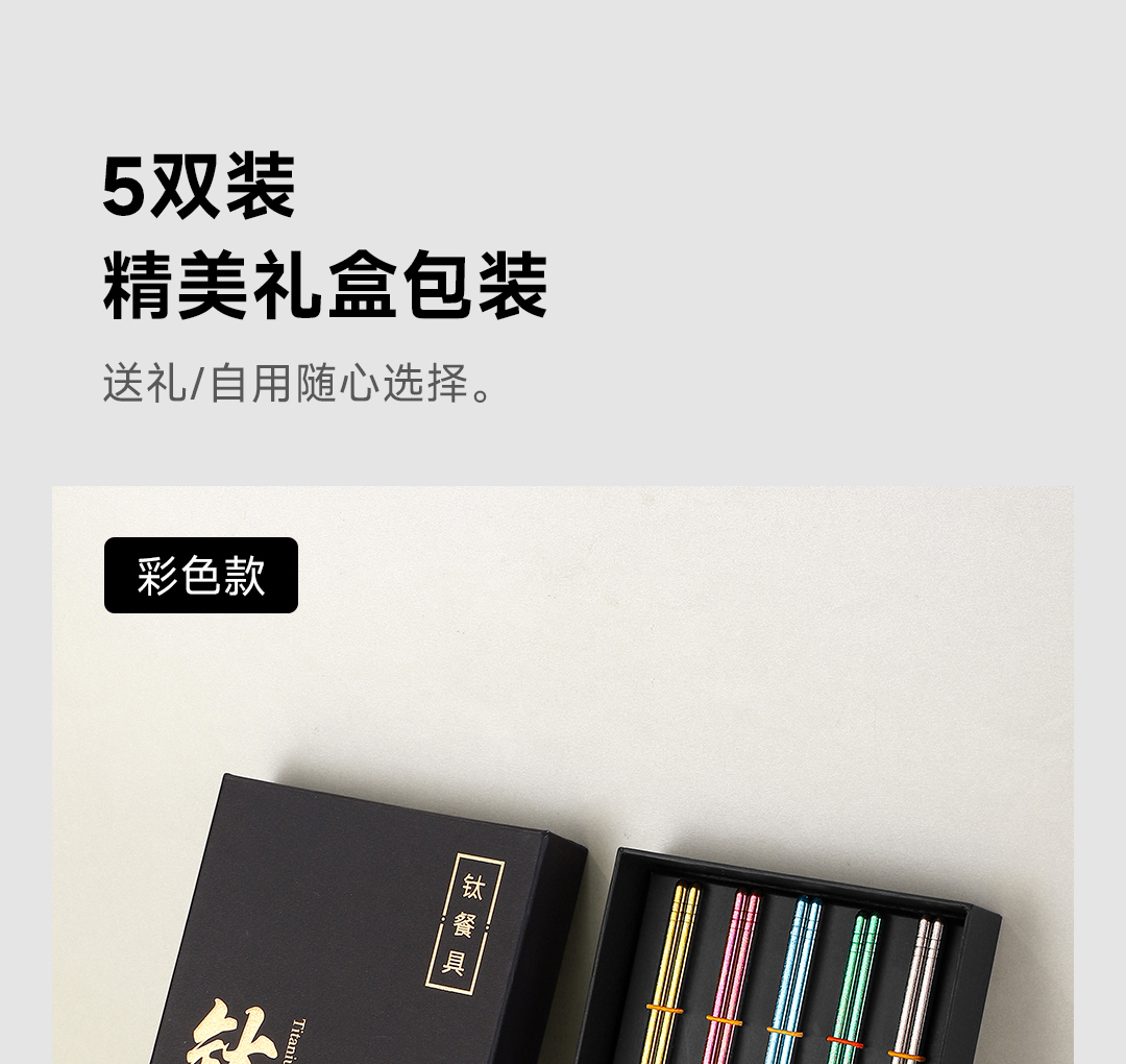 任2套减10【不易发霉藏菌 耐用防滑】钛金属纯钛筷子5双精美礼盒装