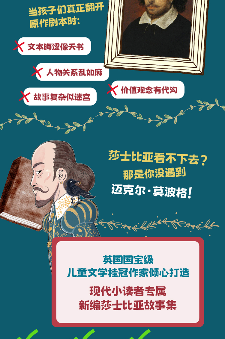 给孩子的第一本莎士比亚 : 莫波格莎翁故事改编集(精装,未小读L码8岁+),英国国宝级儿童文学桂冠作家迈克尔·莫波格写给现代儿童的莎士比亚戏剧故事启蒙读本,轻松读懂十部经典莎剧。“卷福”亲笔卷首语。