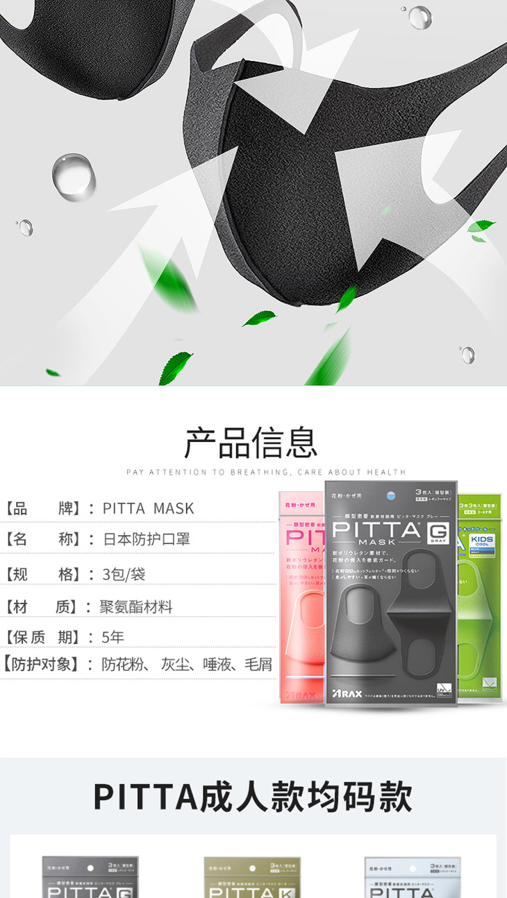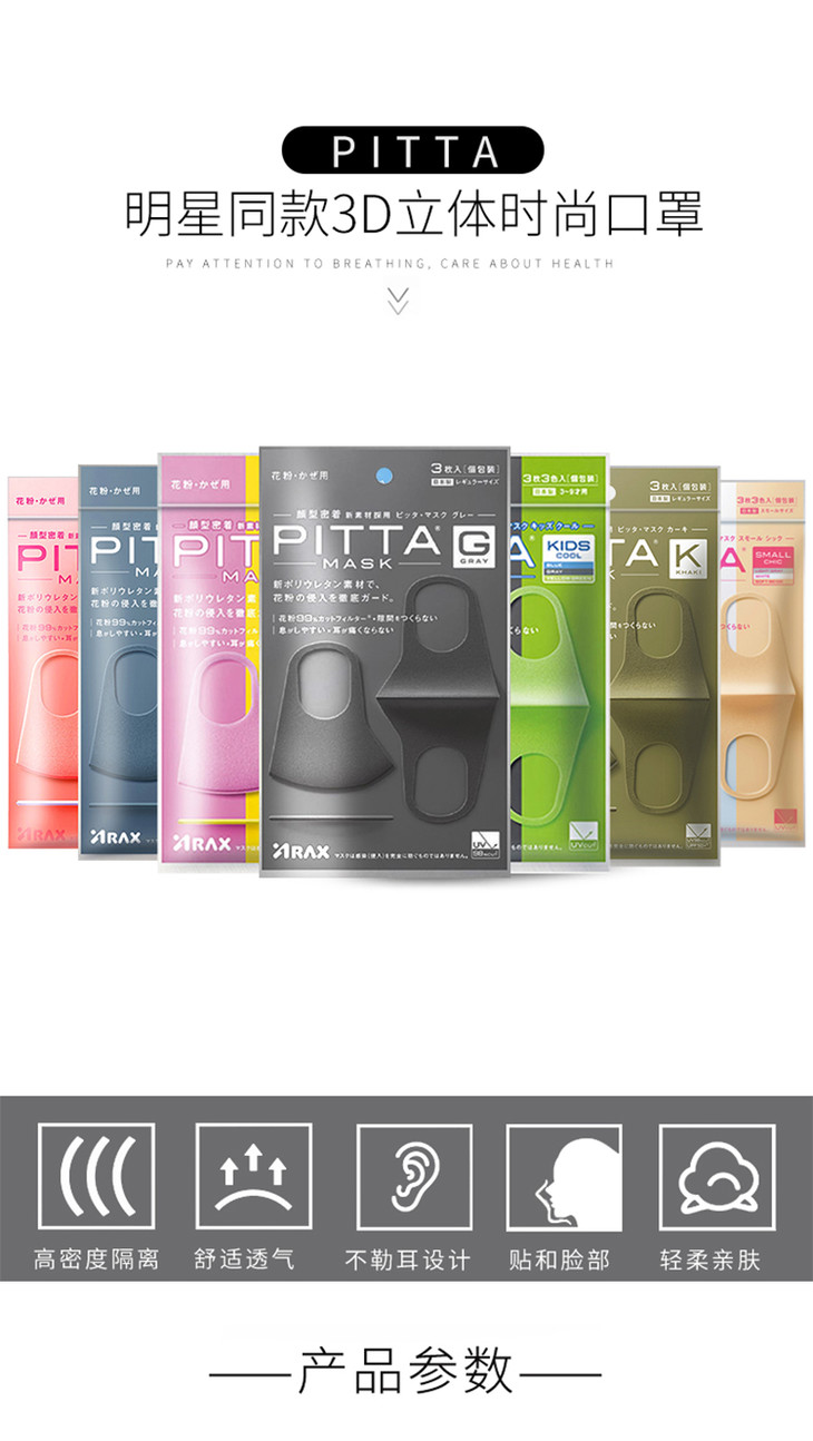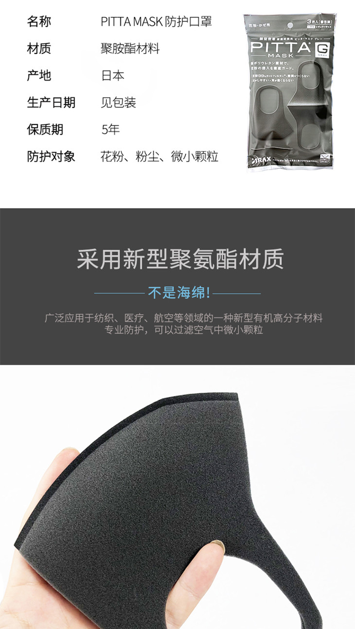 PITTA时尚新素材口罩-深灰色 1*3 易好